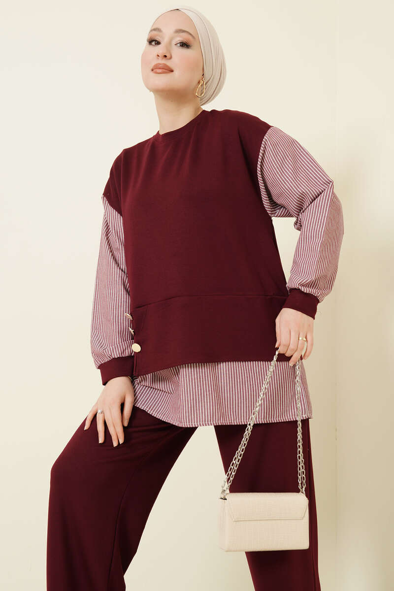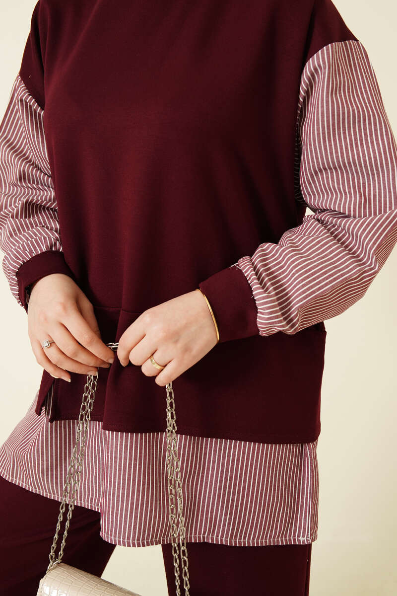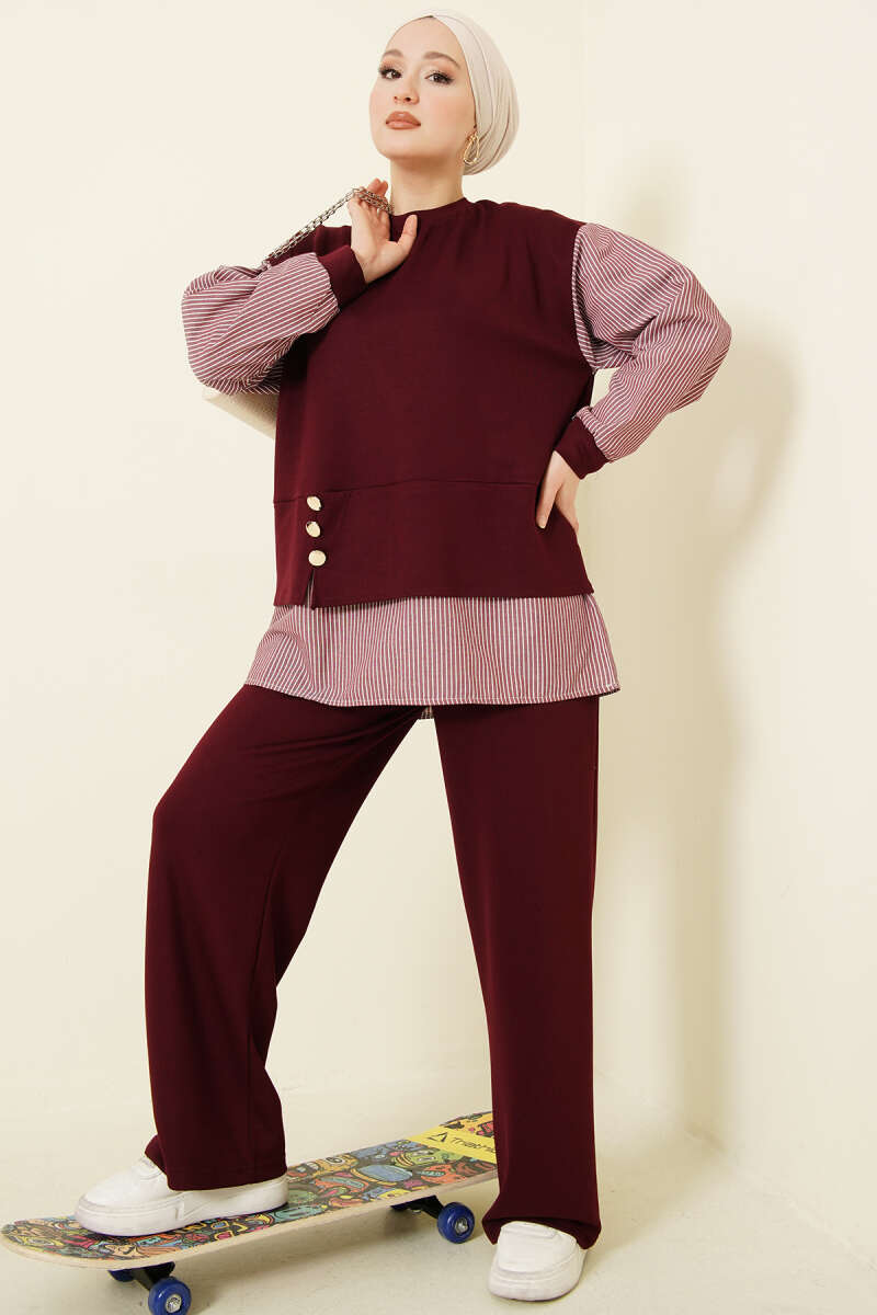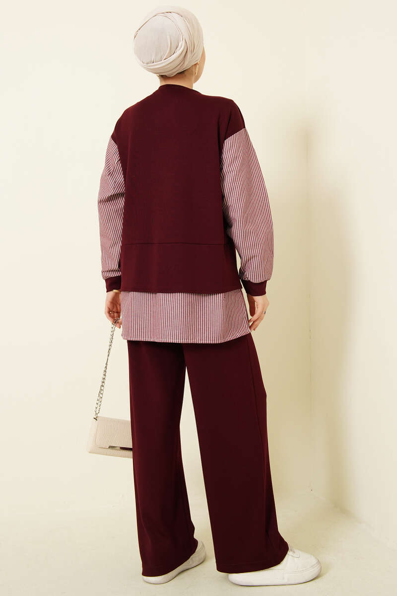 Çizgili Gömlek Garnili Loyşa İkili Takım Bordo