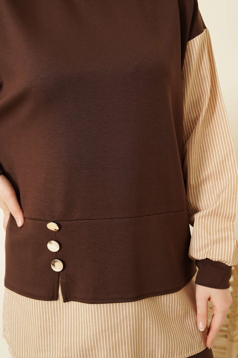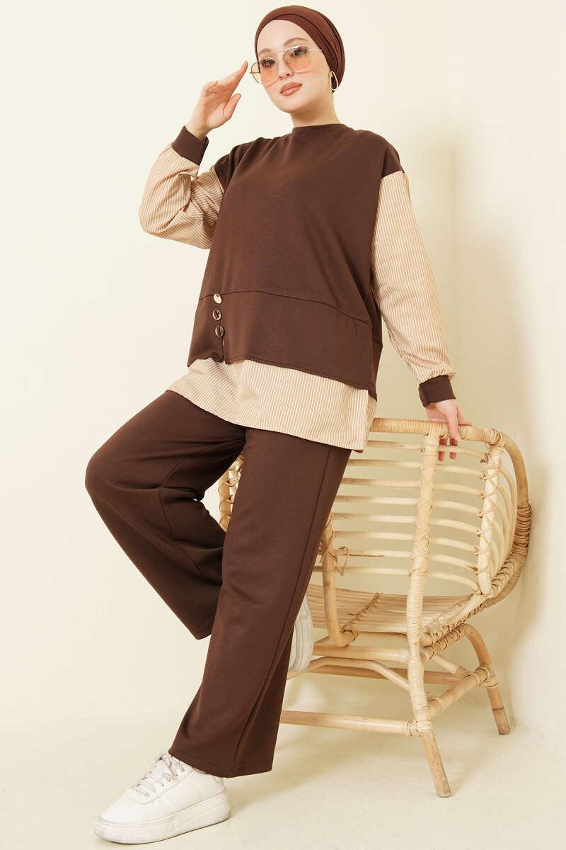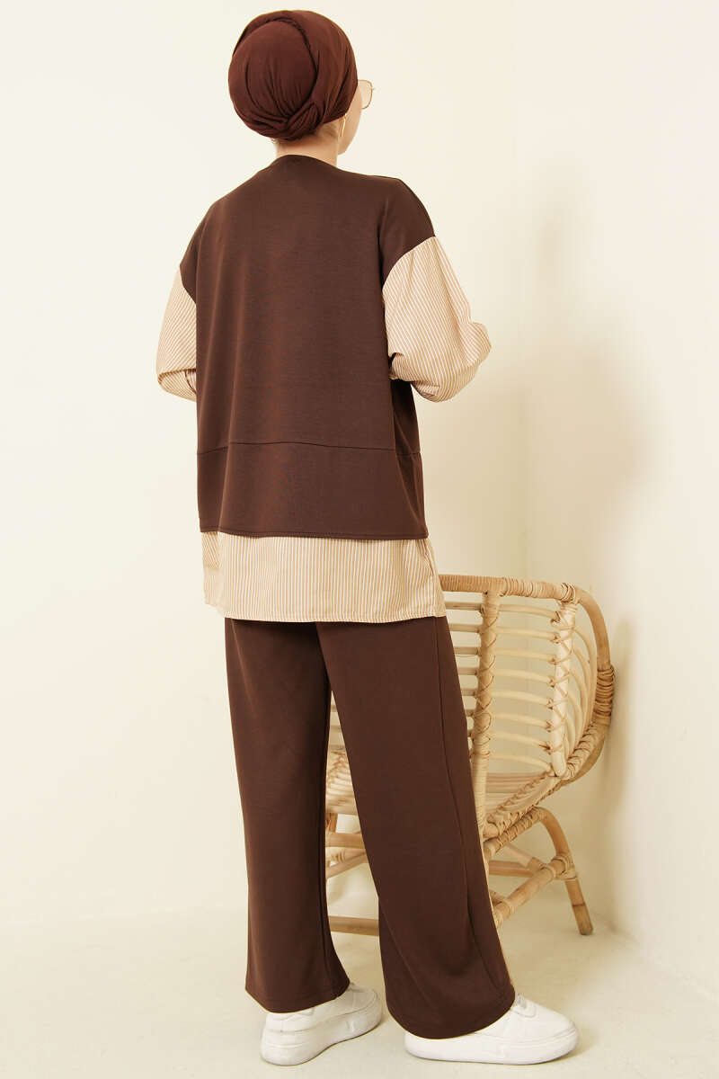 Çizgili Gömlek Garnili Loyşa İkili Takım Kahve