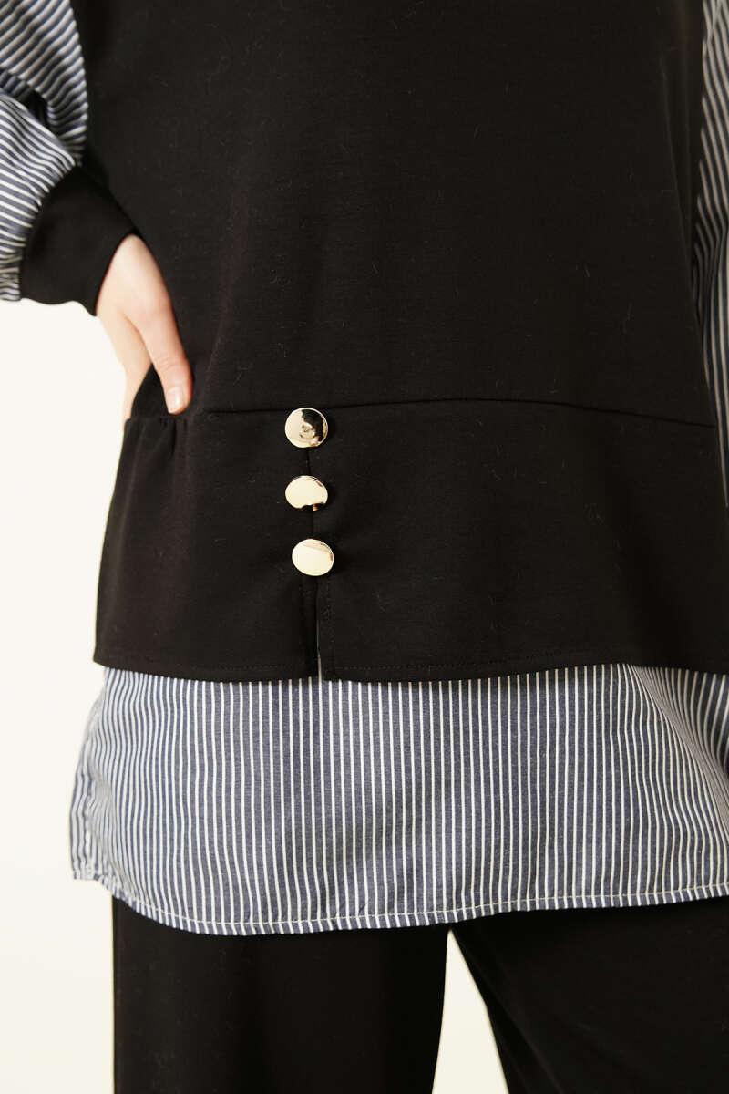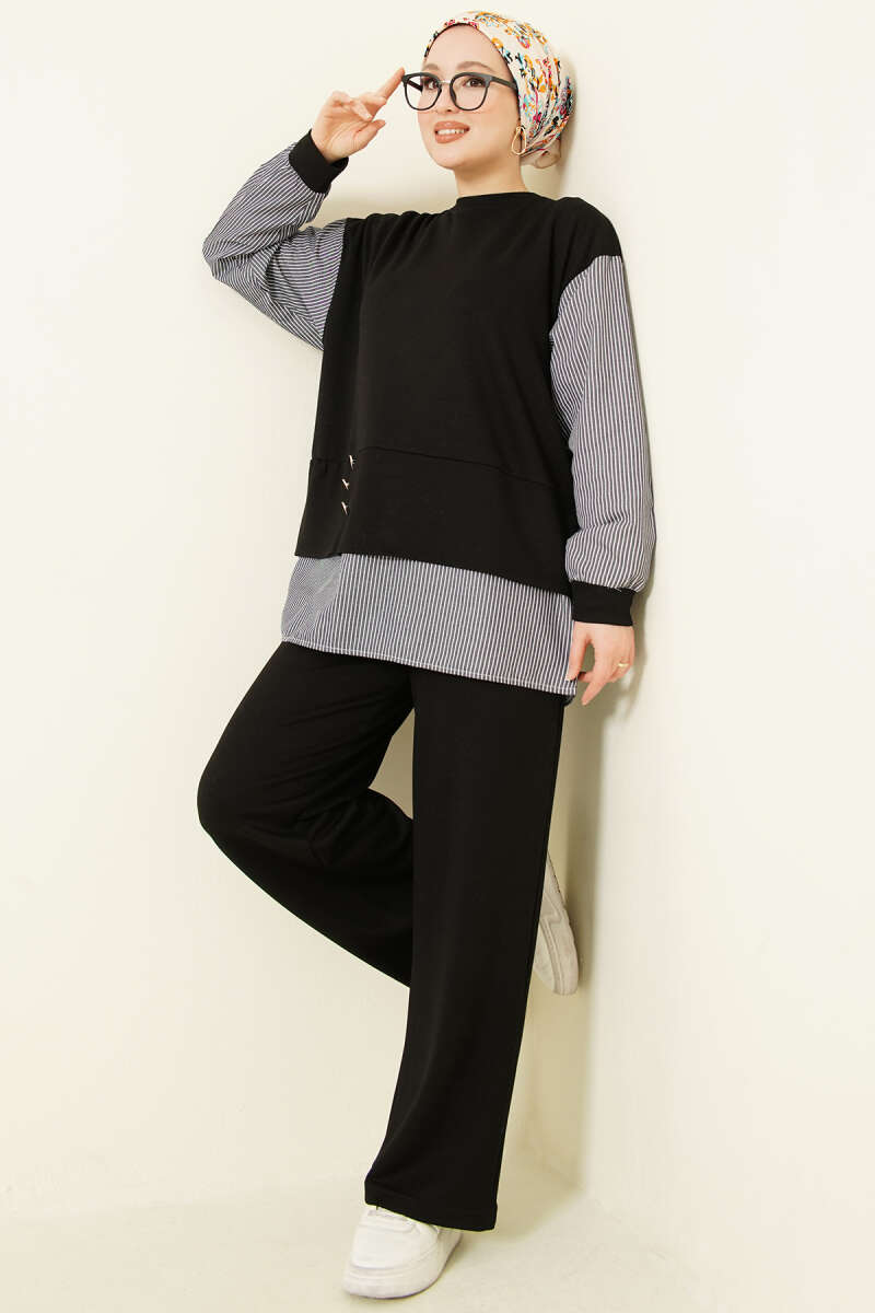Çizgili Gömlek Garnili Loyşa İkili Takım Siyah