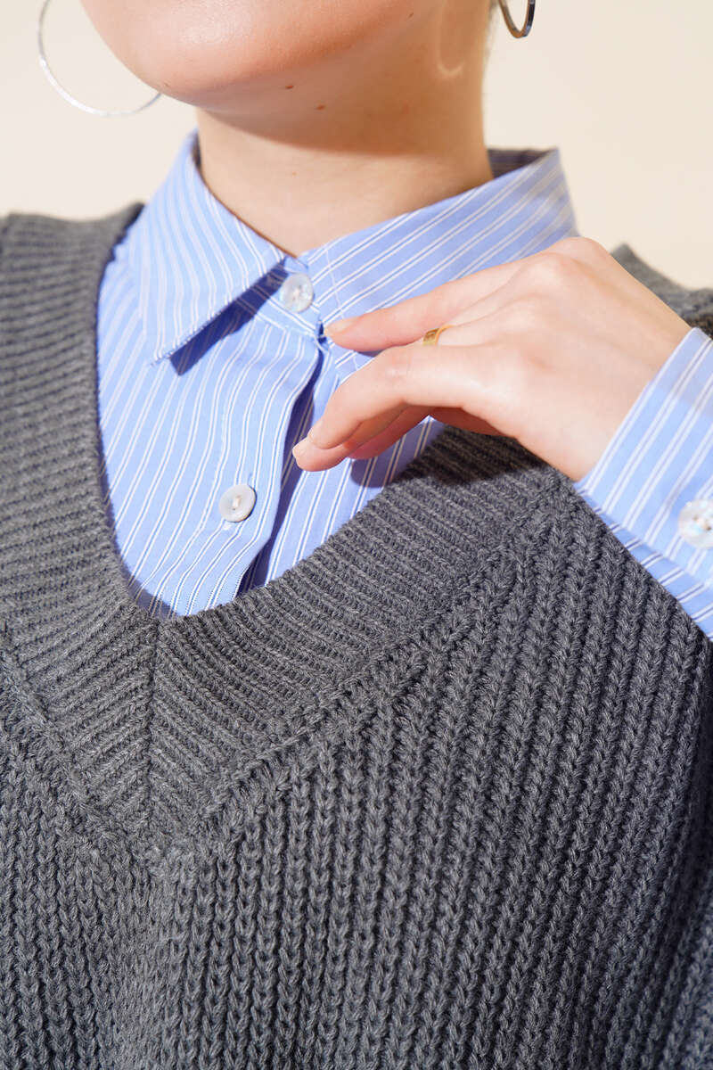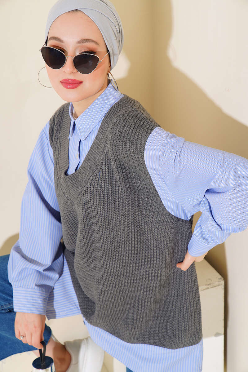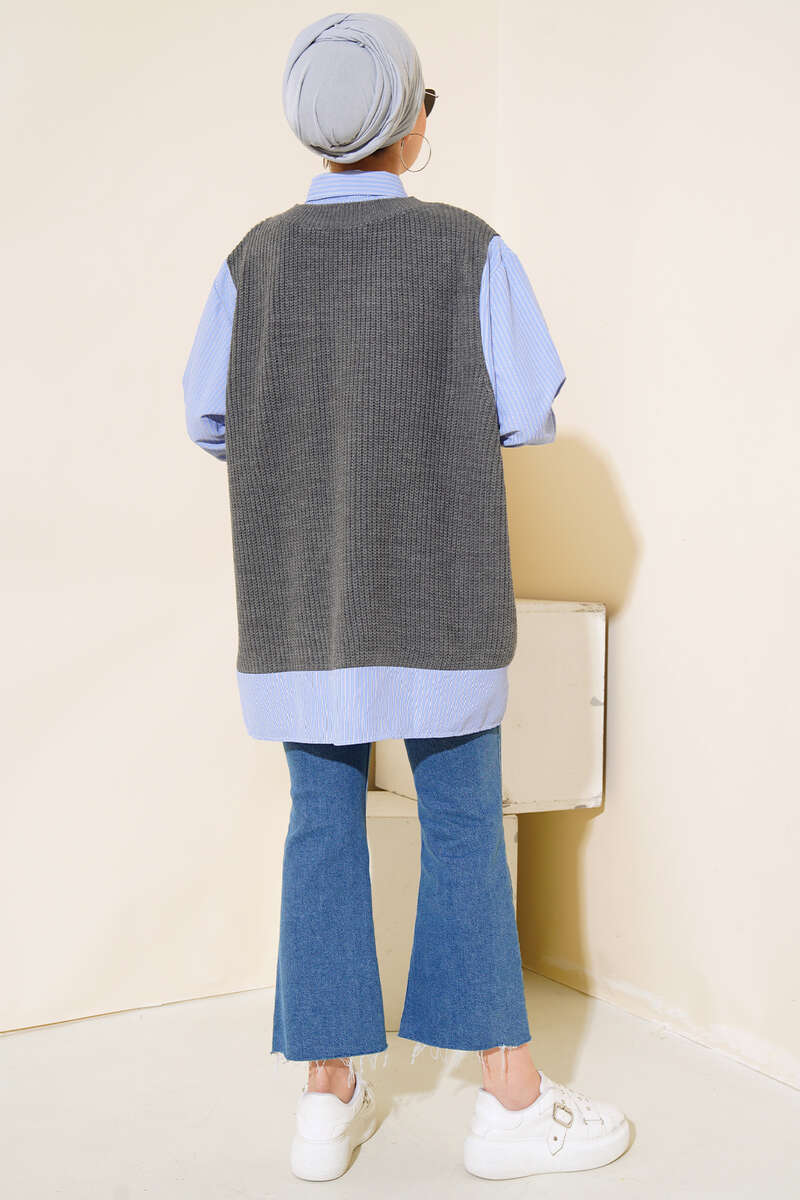 Yeni sezon triko modelimiz sizlerle beraber. Gömlek garnili trikomuz şık bir tasarıma sahiptir. Gömleği çizgili oluşu hareketlilik kazanmıştır. Kol bilekleri düğmeli olan trikomuzun renk seçenekleri mevcuttur.