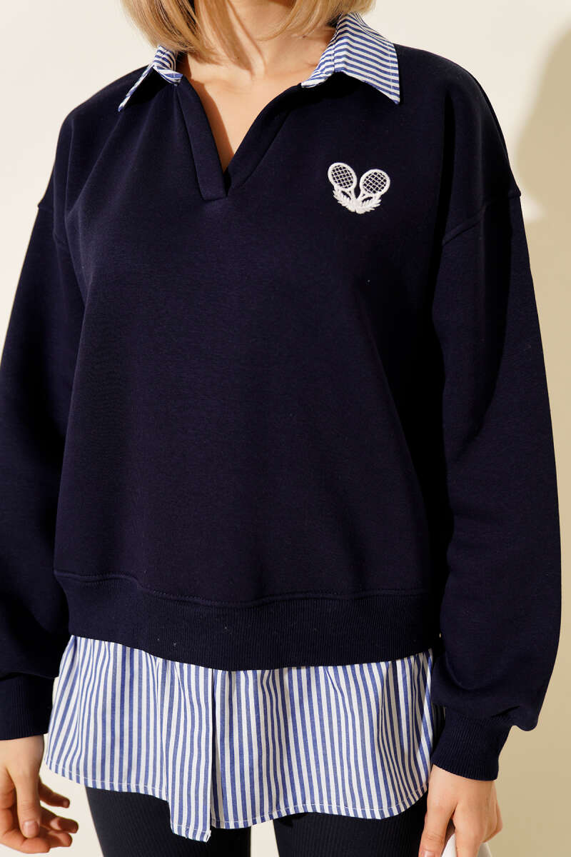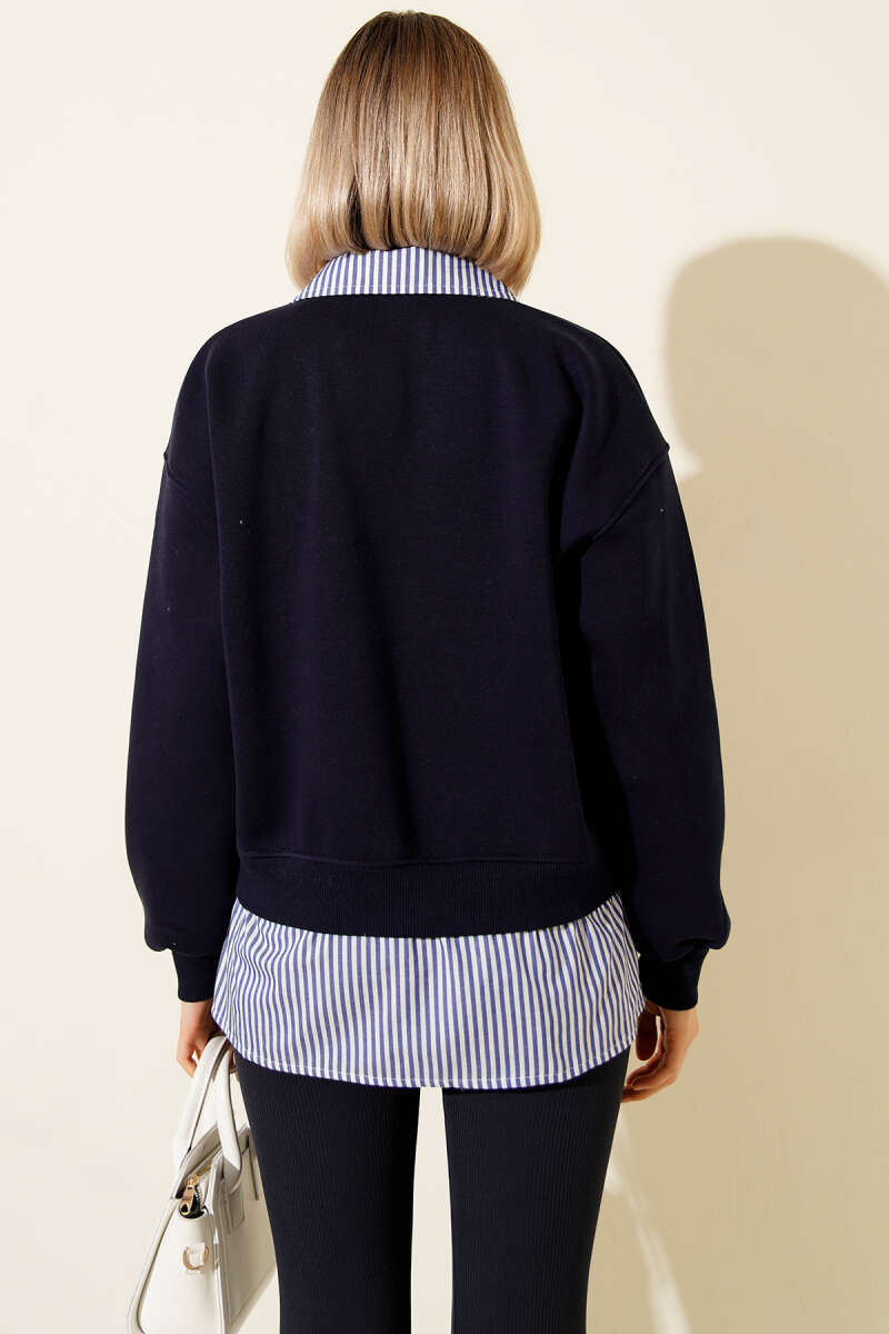 Çizgili Gömlek Garnili Üç İplik Sweatshirt Bebe Mavi