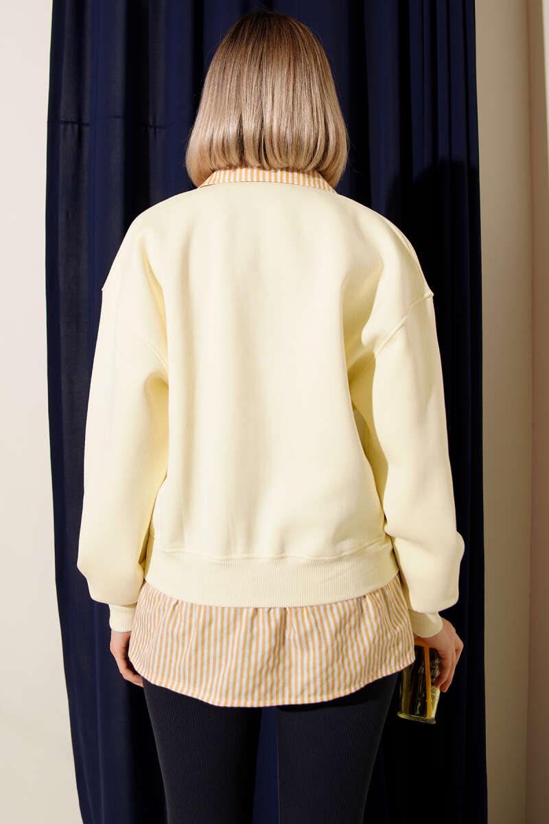 Çizgili Gömlek Garnili Üç İplik Sweatshirt Lacivert