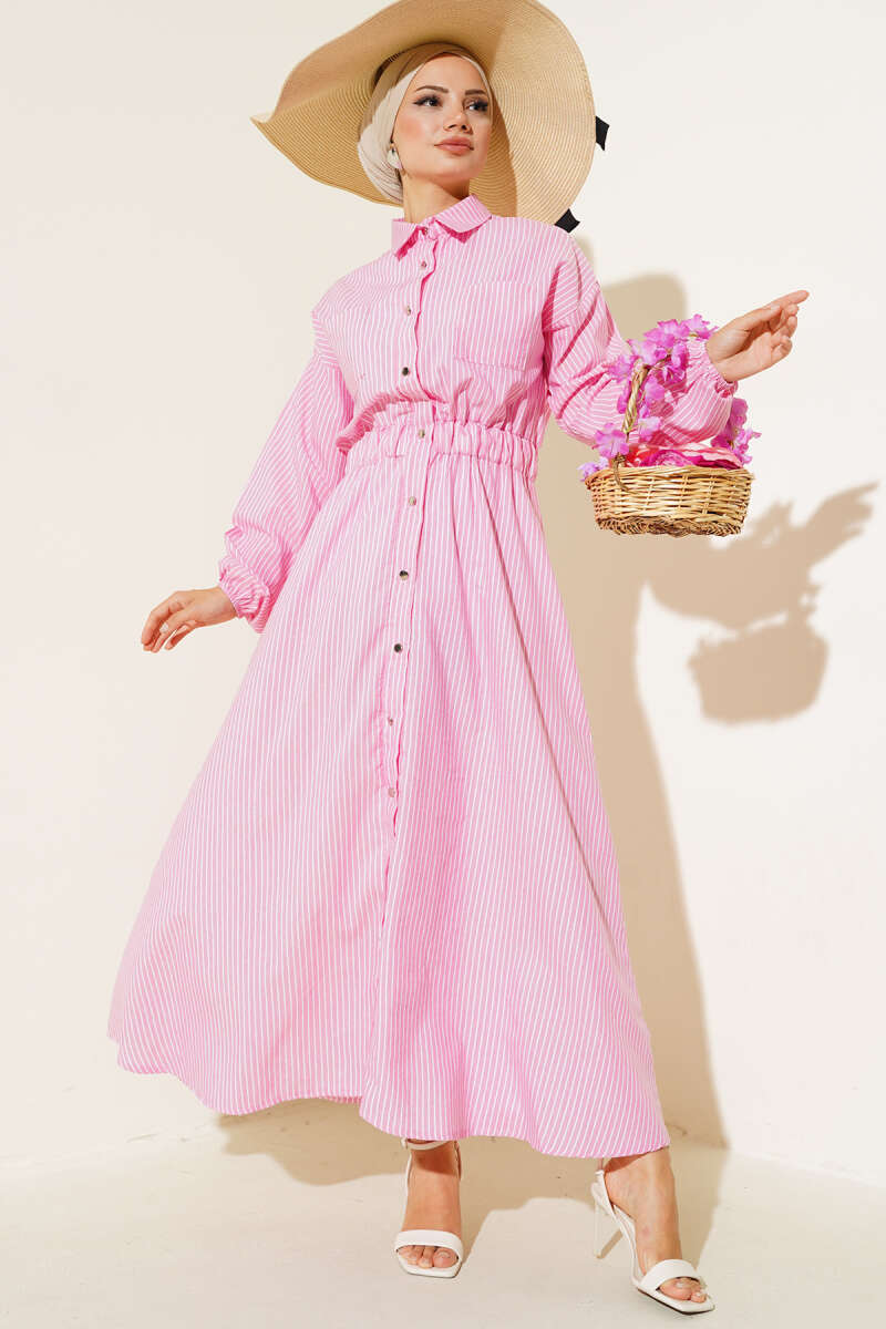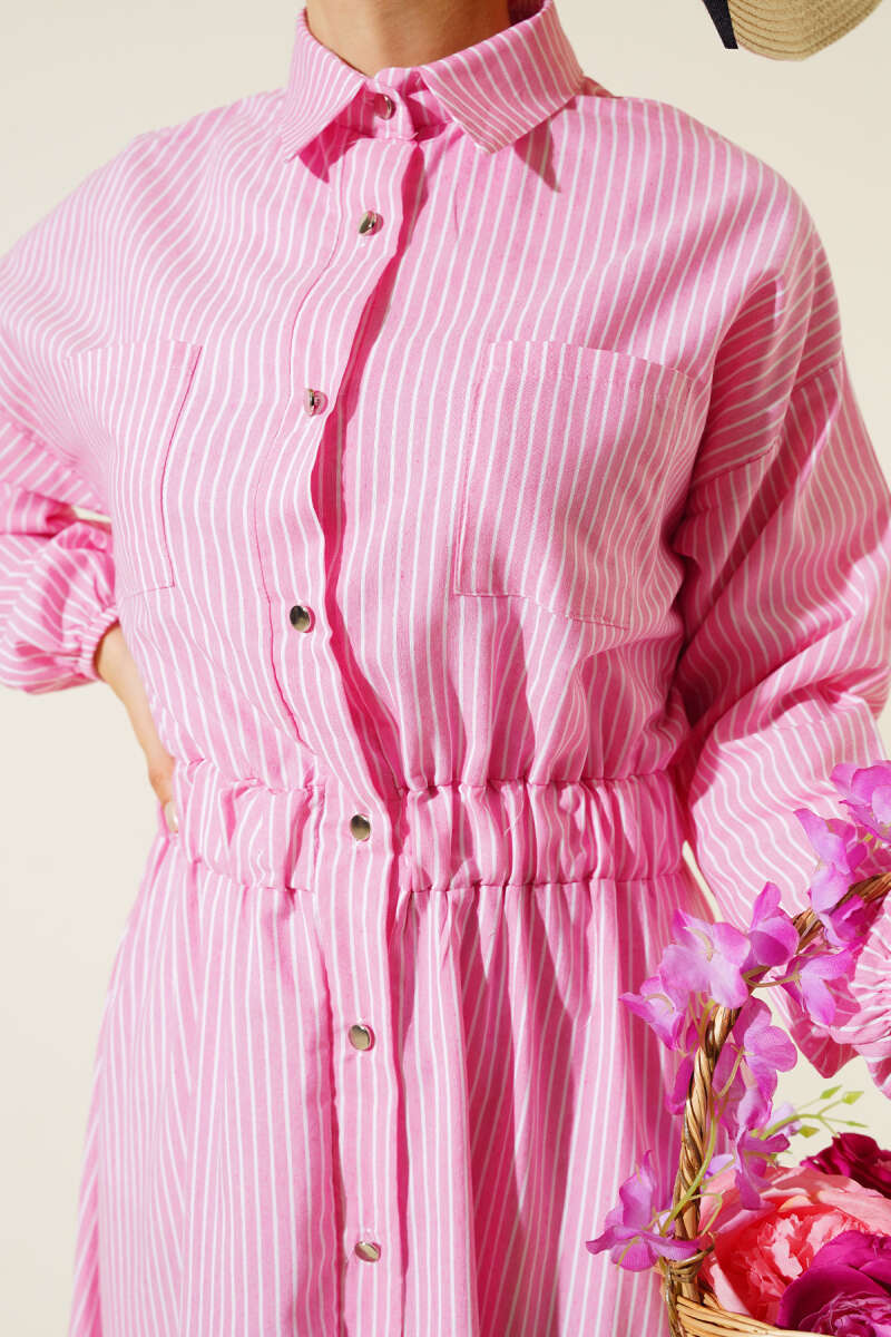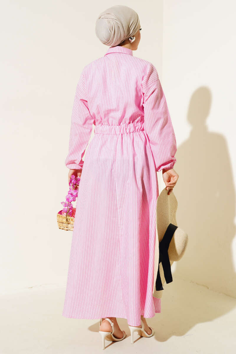 Boğazlı Çizgili Fitilli Triko Elbise İndigo
