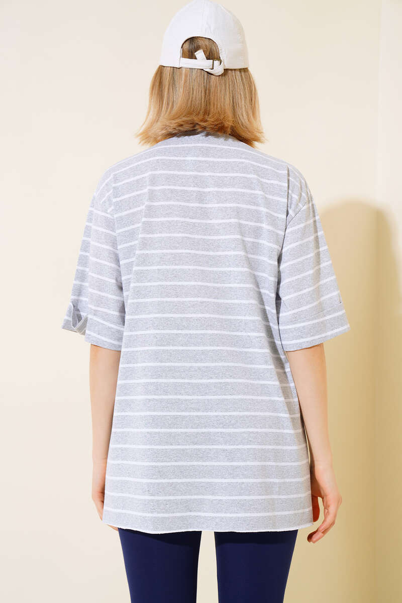 Bu yaz tarzıyla fark yaratan tshirtümüz çizgili desenleriyle dikkat çekmektedir. Oval yaka olan tshirt modelimizin yanları yırtmaçlıdır. Renk seçenekleri mevcuttur.