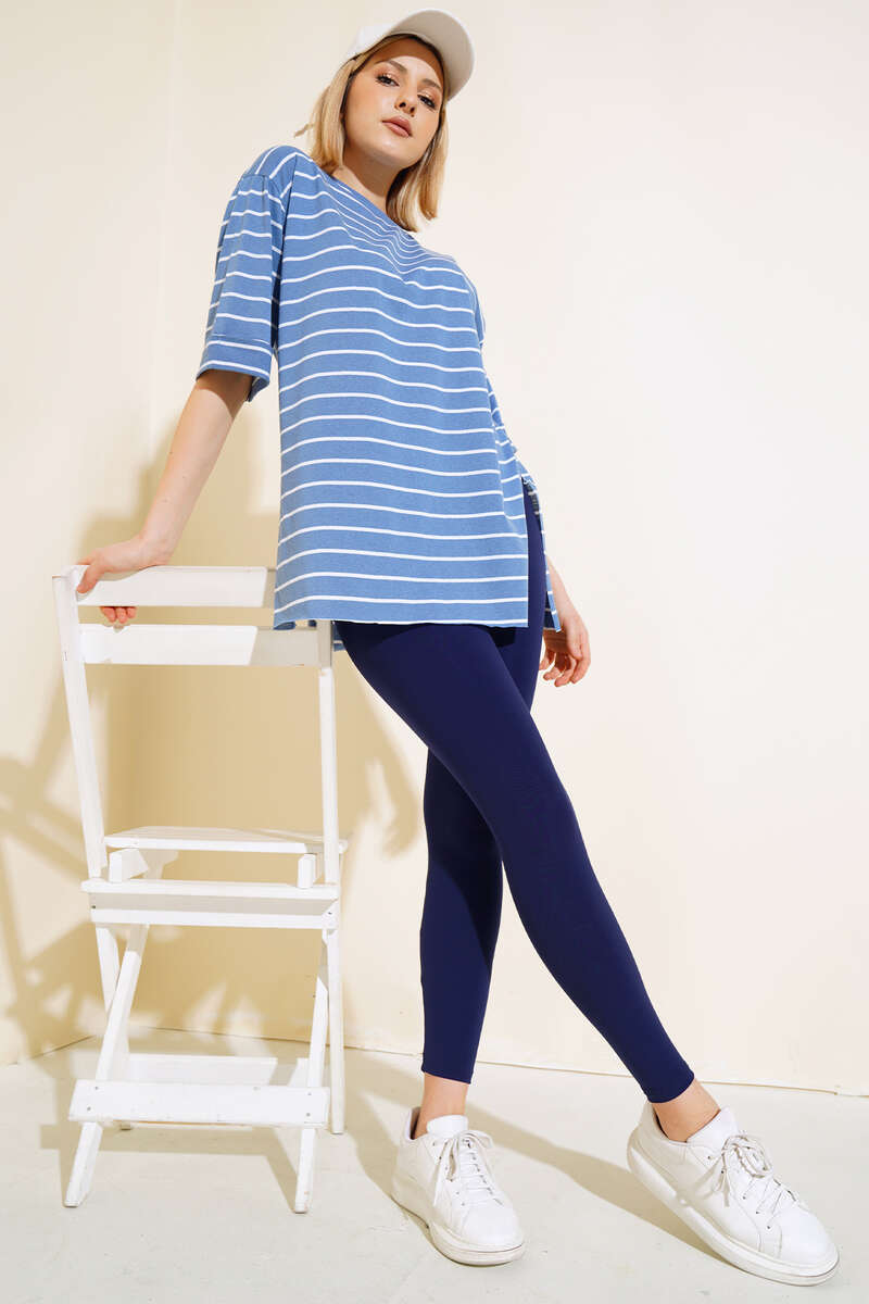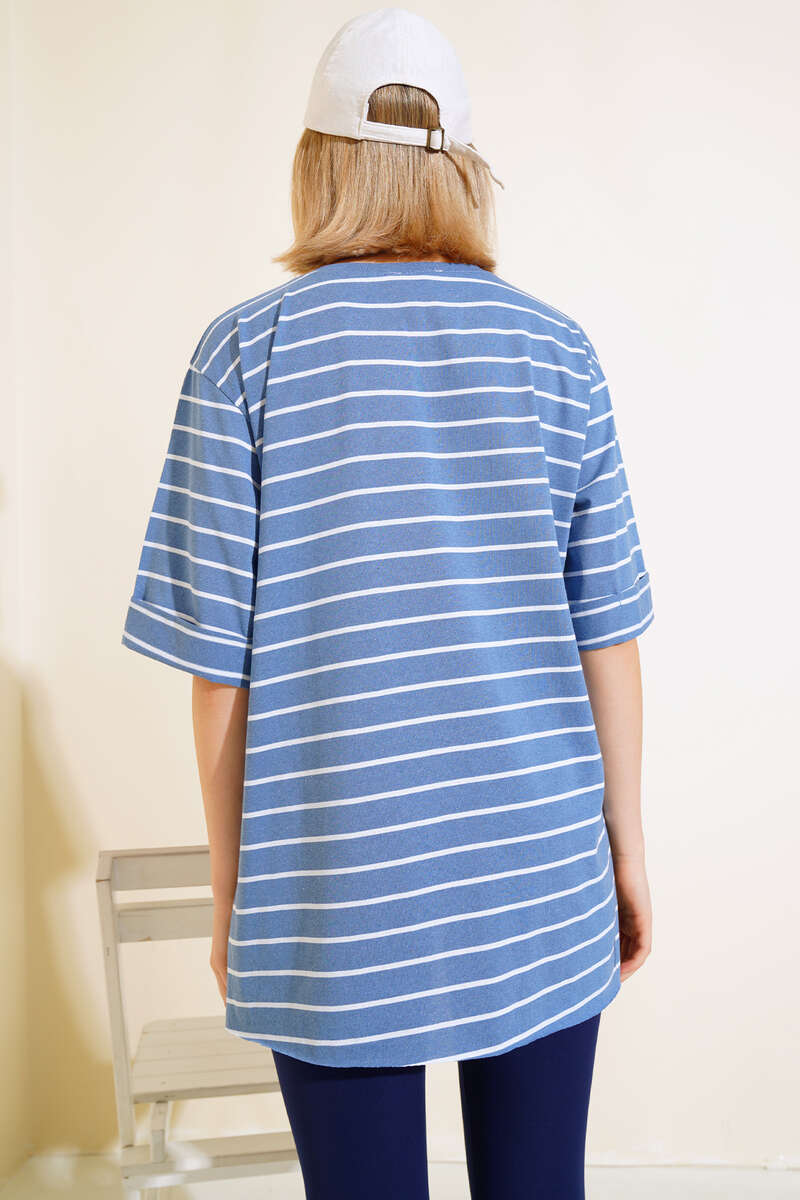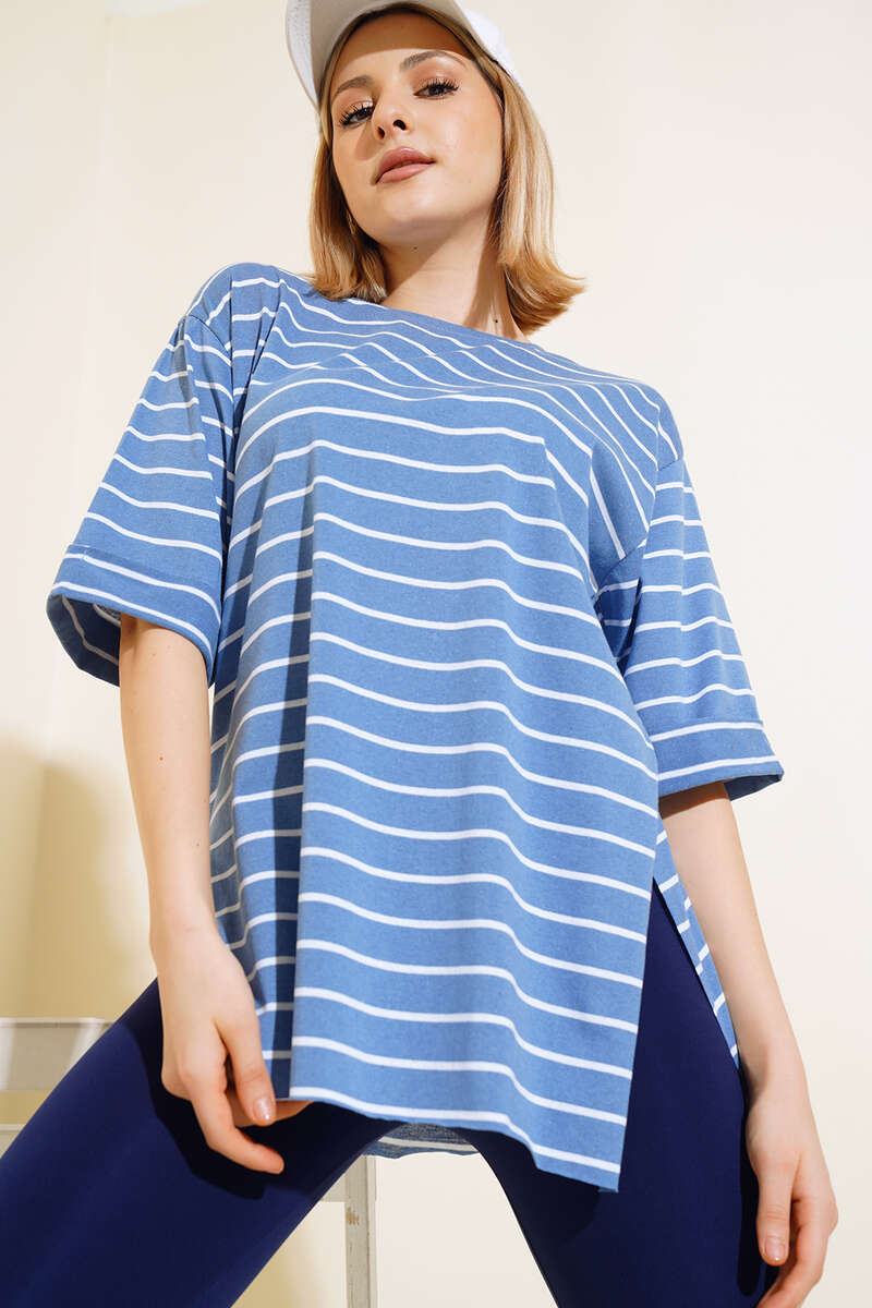 Bu yaz tarzıyla fark yaratan tshirtümüz çizgili desenleriyle dikkat çekmektedir. Oval yaka olan tshirt modelimizin yanları yırtmaçlıdır. Renk seçenekleri mevcuttur.