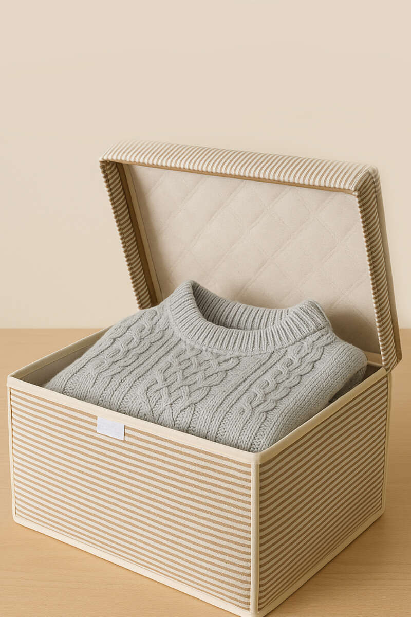 Çizgili Kapaklı Mega Kutu Hurç Krem