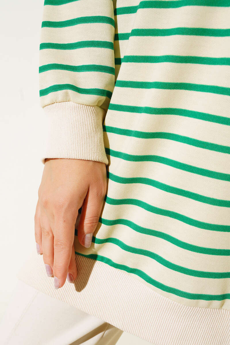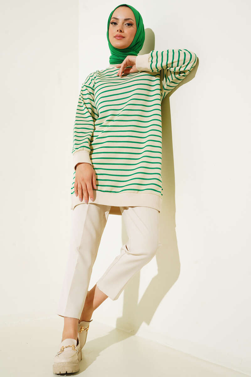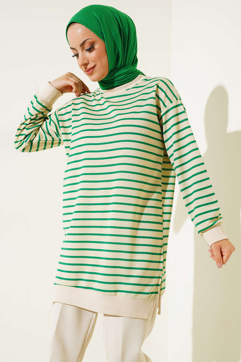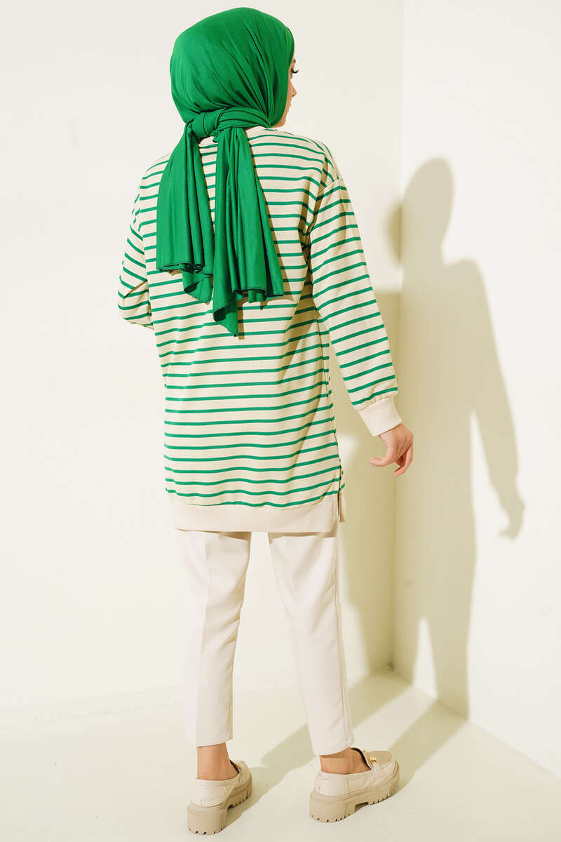 Çizgili Kaşkorse Yırtmaçlı Tunik Yeşil