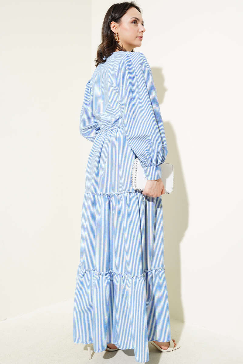 Duble Kol İp Bağcıklı Elbise Çağla Yeşili