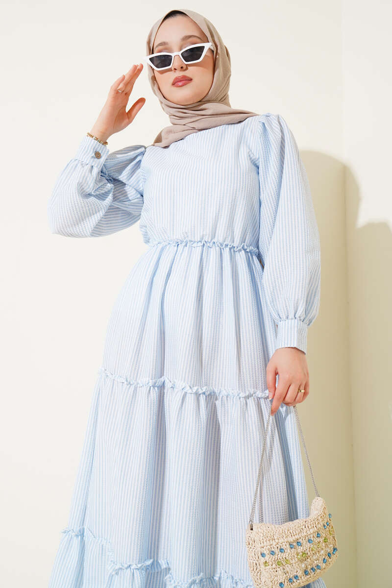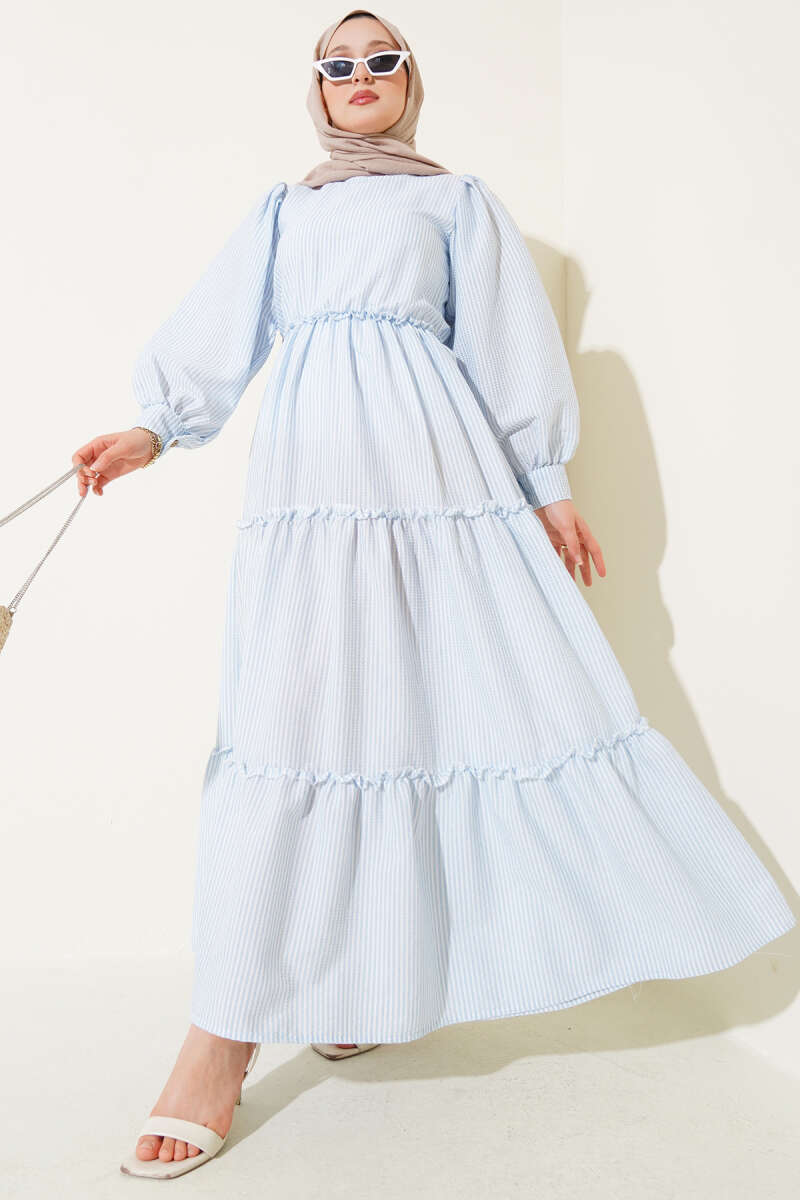 Çift İp Kuşaklı Ekoseli Elbise Bej