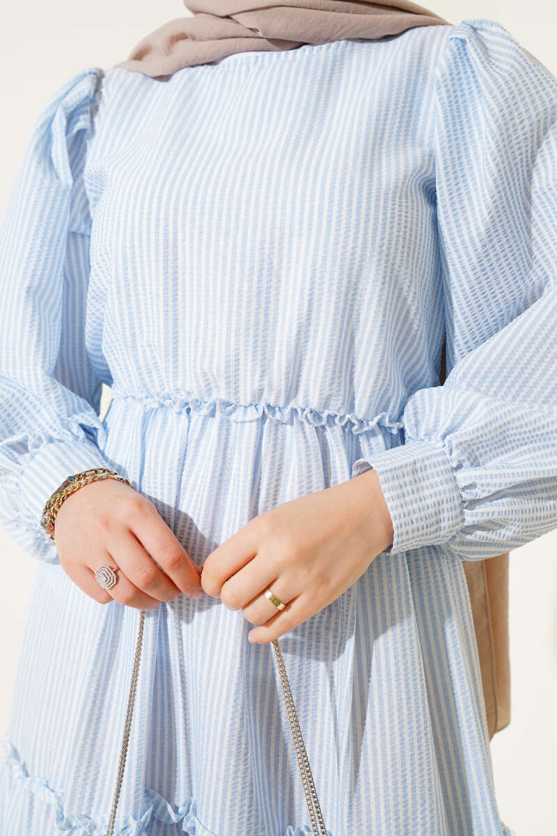 Bilek Bağlamalı Kuşaklı Abiye Elbise Lacivert