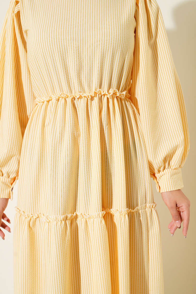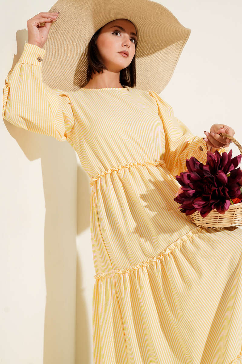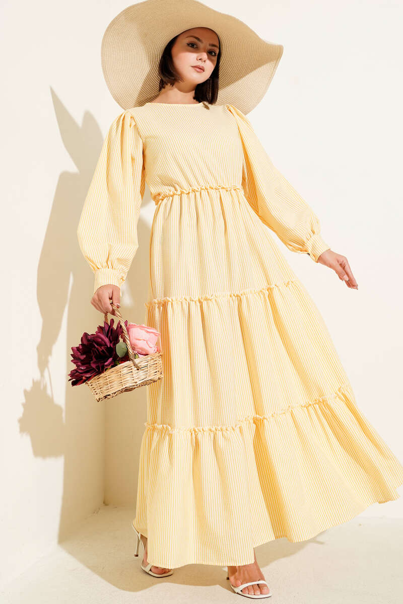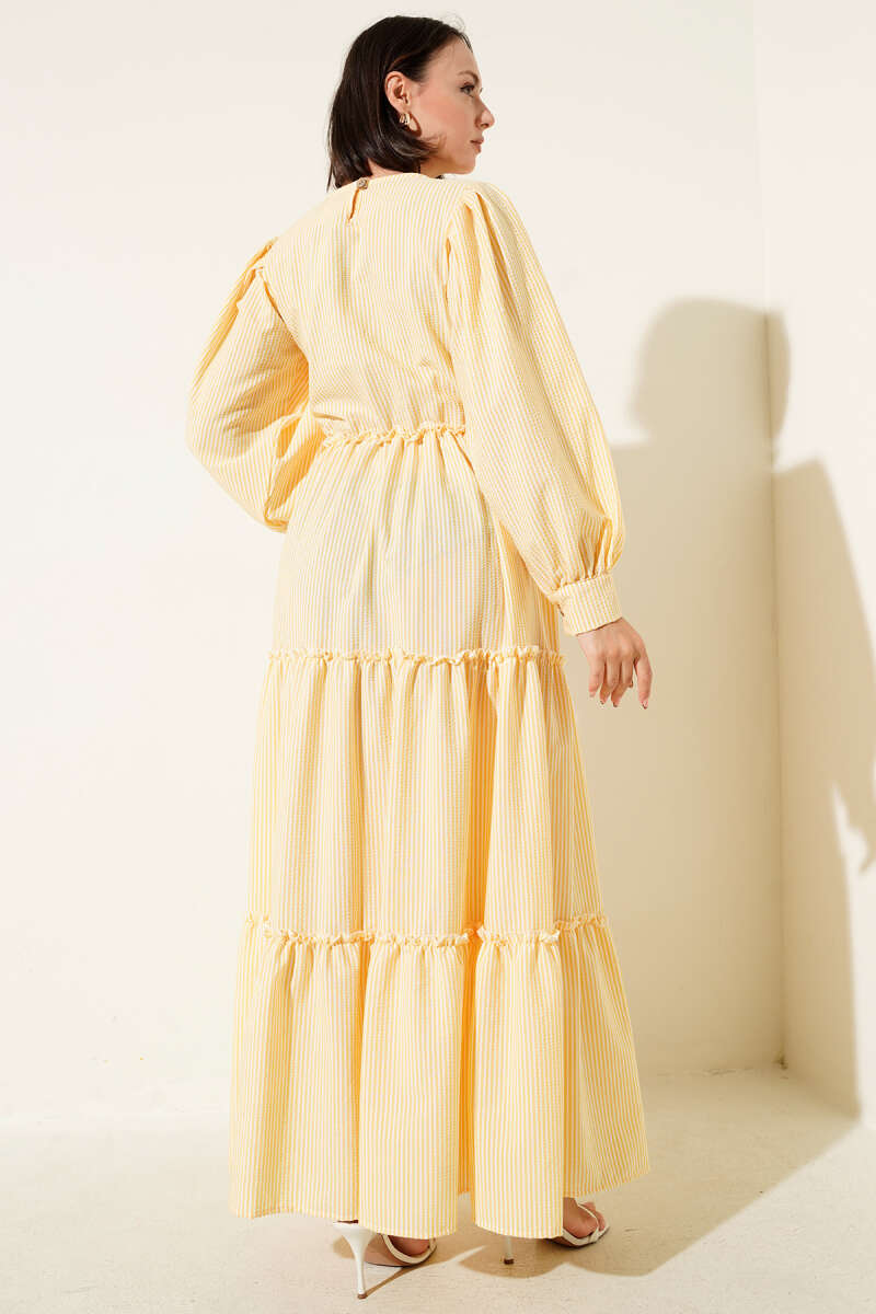 Gül Detaylı Pelerinli Abiye Elbise Pudra