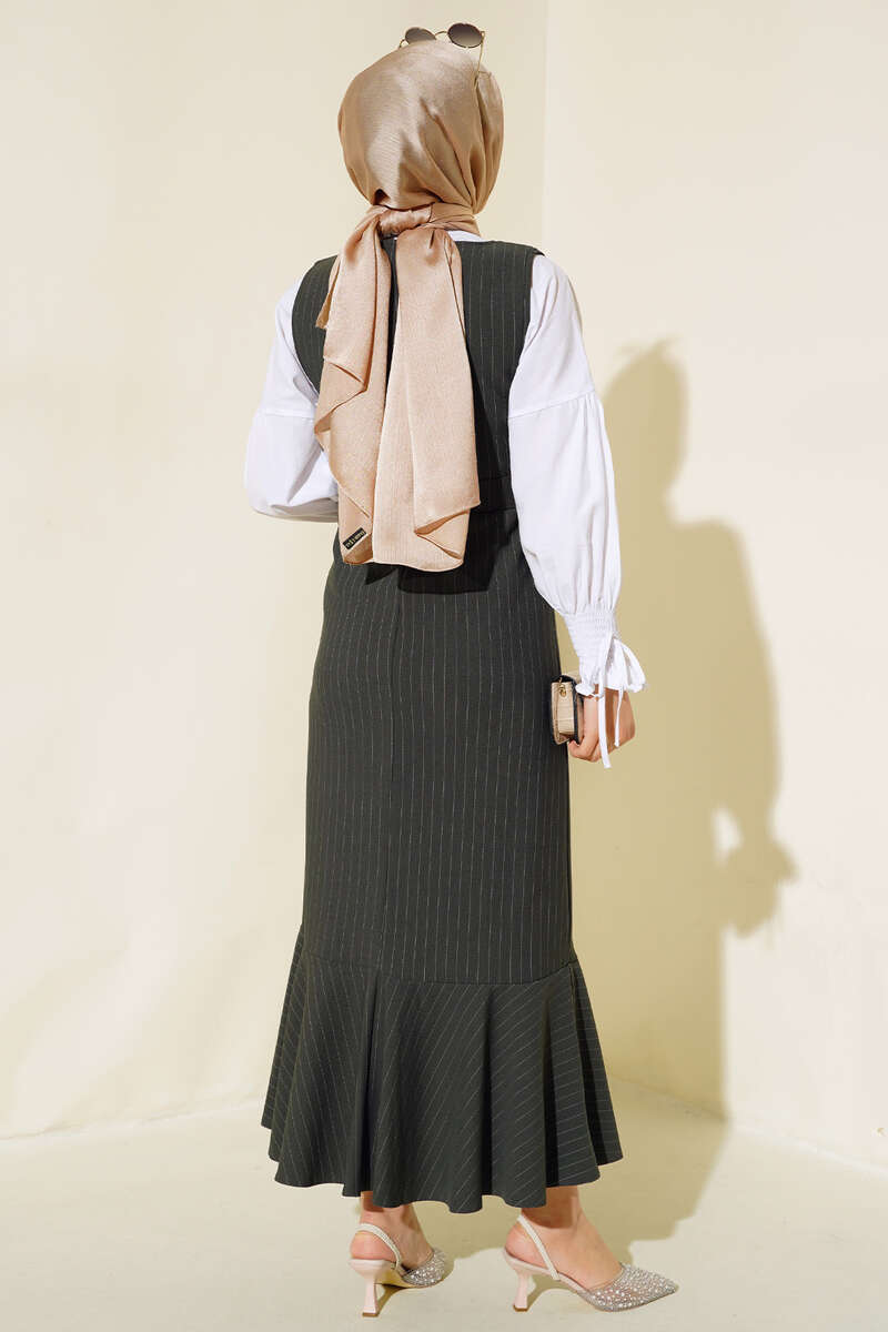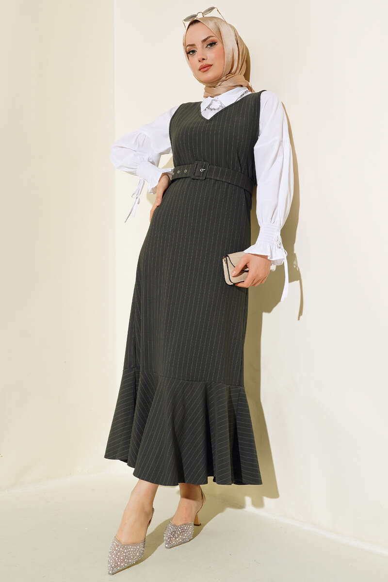 Yeni sezon jile modelimiz sizlerle beraber. Jilemiz v yakadır. Çizgili modeldir. İki adet kemer köprüsü olup, kemeri mevcuttur. Etek ucu kat modeldir. Şık ve jile modelimiz size çok yakışacak.