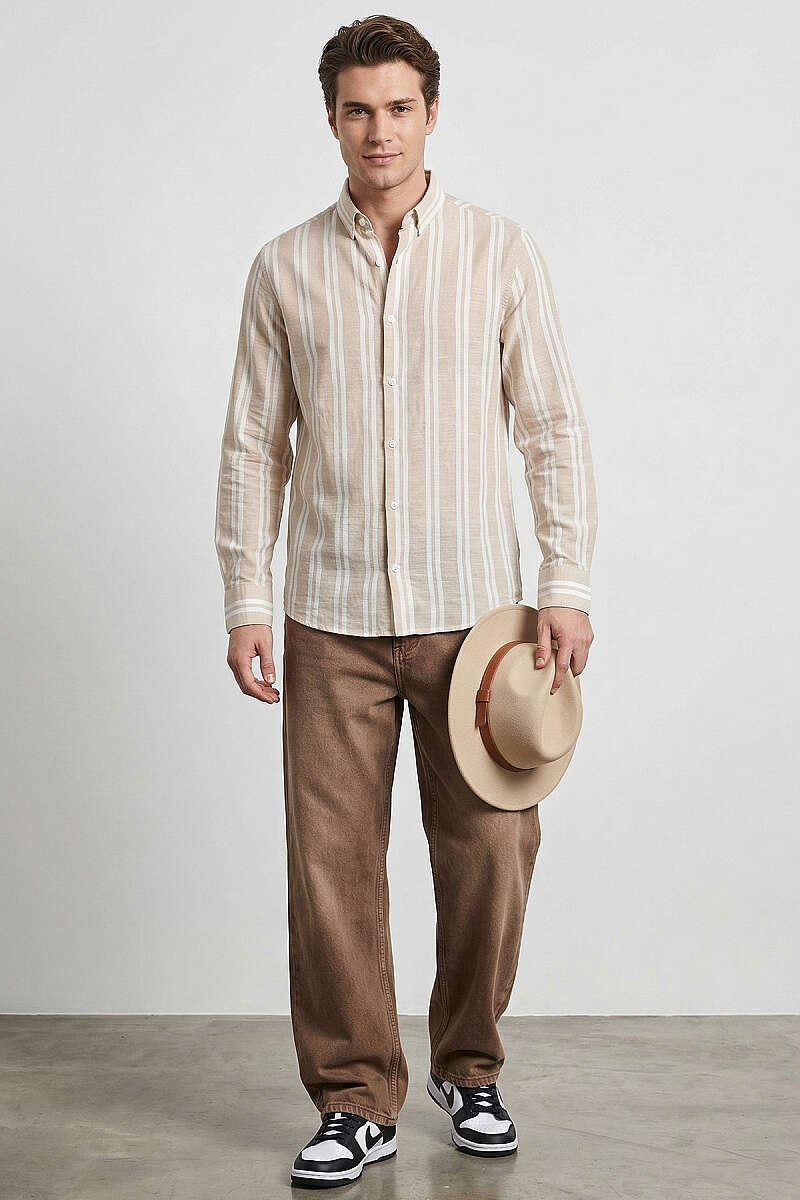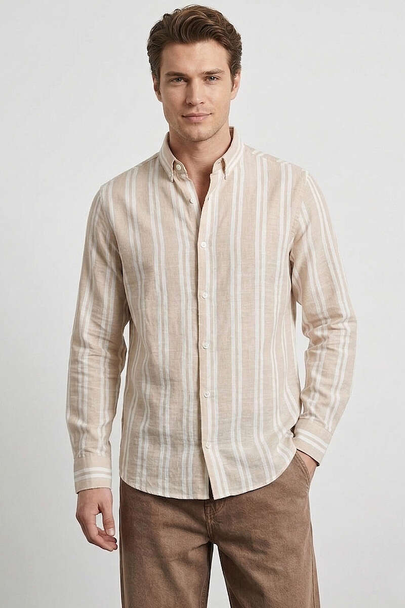 İnci Detaylı Kuşaklı İkili Takım Bej