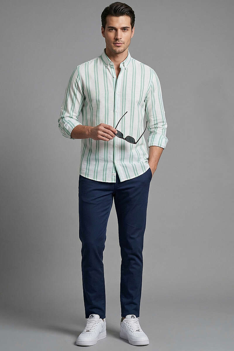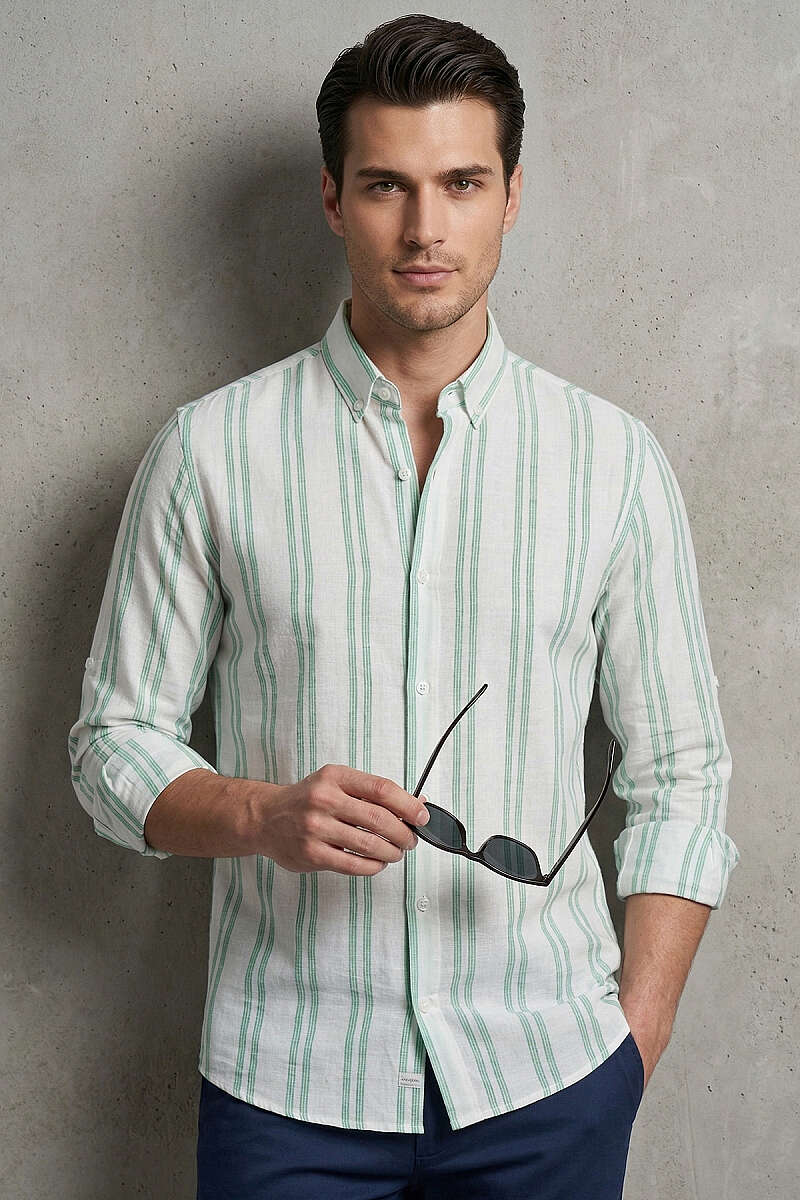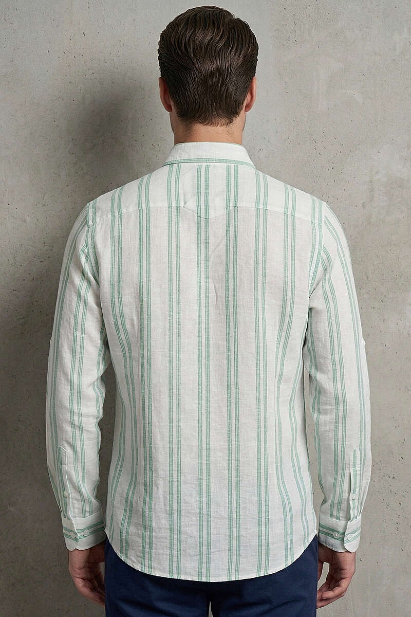 Çizgili Keten Erkek Gömlek Mint