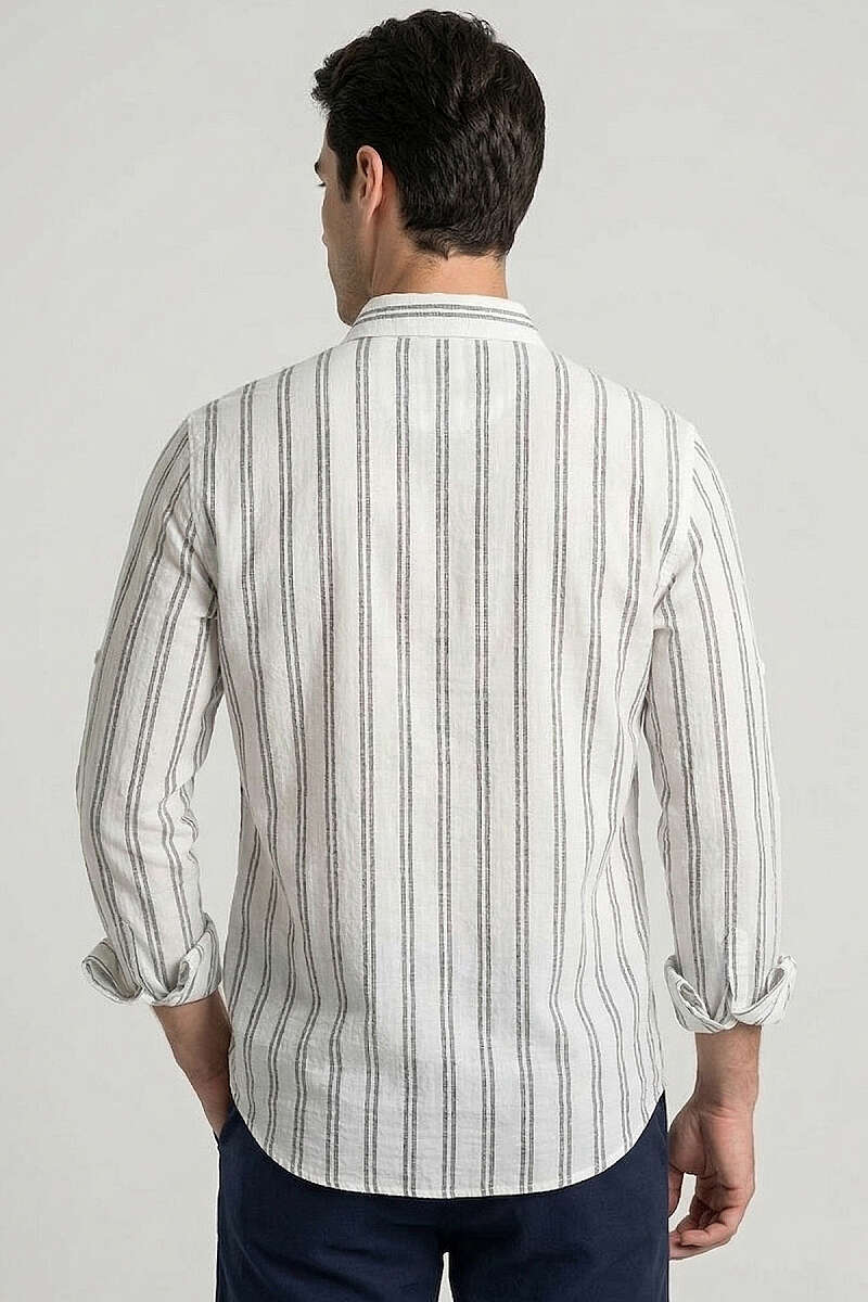 Çizgili Keten Erkek Gömlek Siyah