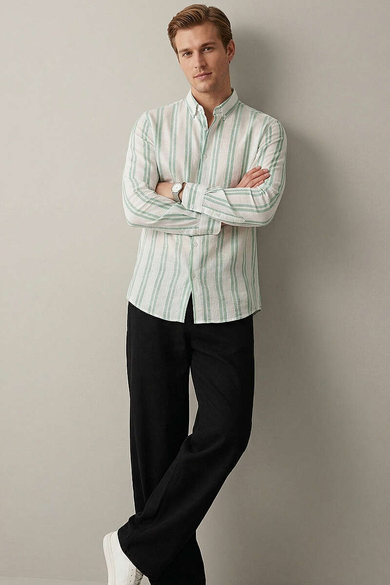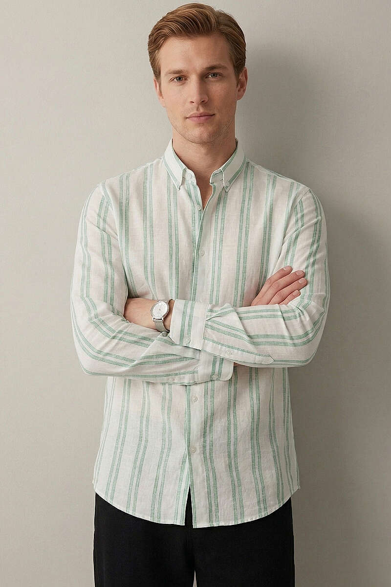 Yatay İnce Çizgili Ribanalı Tunik Yeşil