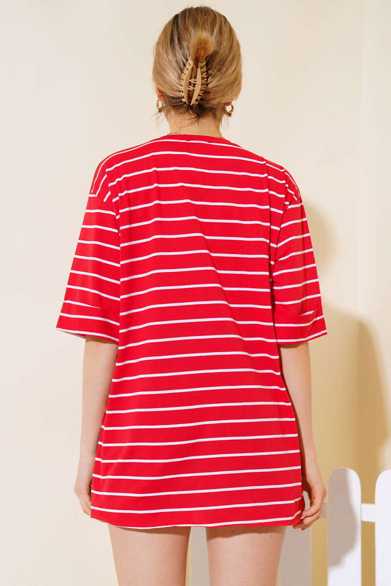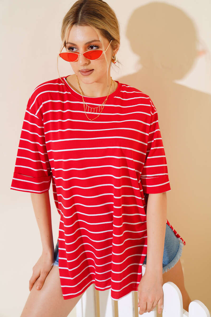 Çizgili Kırmızı Tshirt