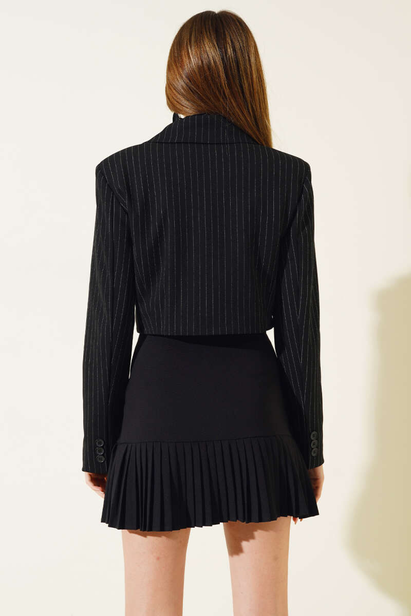 Çizgili Kısa Blazer Ceket Siyah
