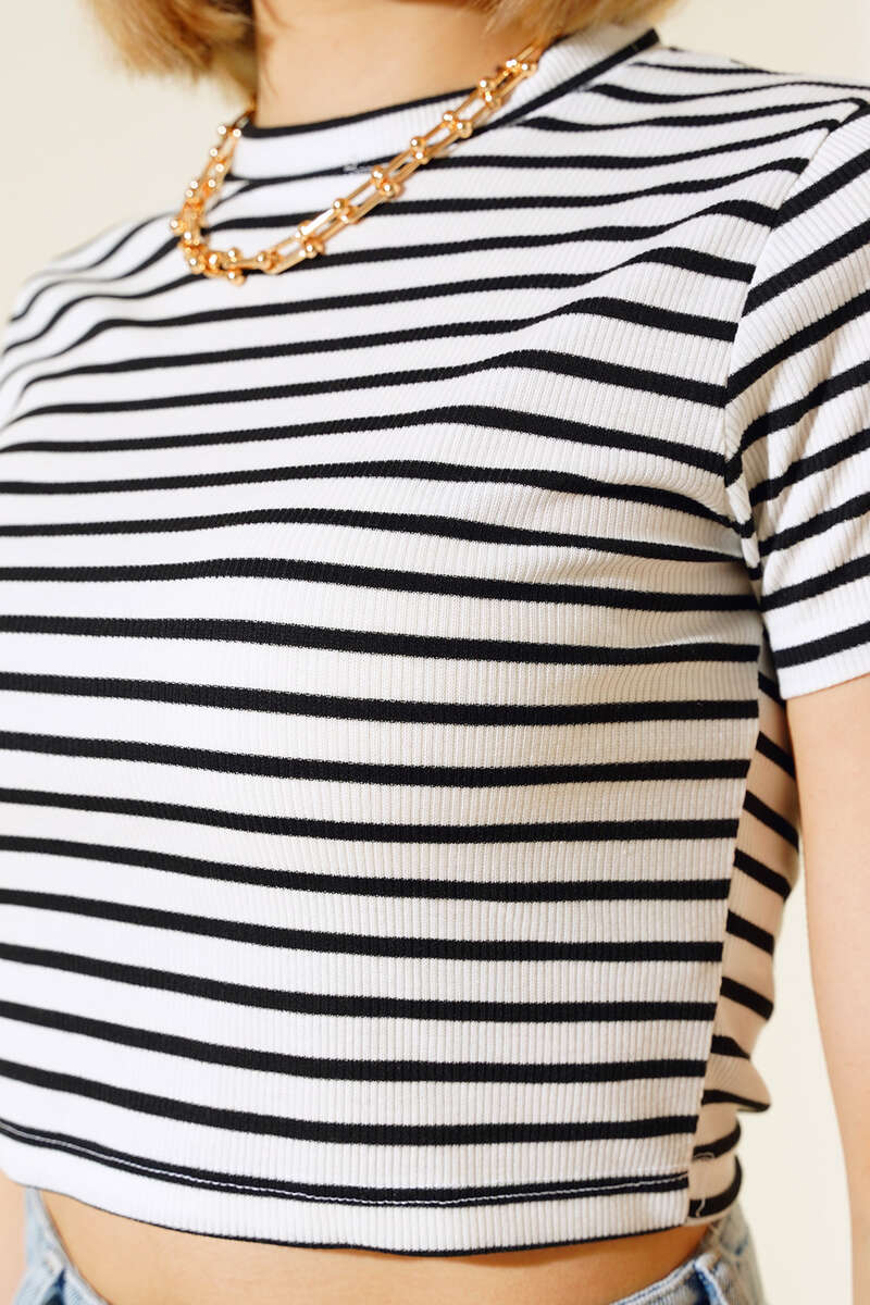 Çizgi desenli crop modelimizi çok seveceksiniz. Kısa kollu olan crop modelimiz sportif tarzıyla dikkatleri üzerine çekmektedir.
