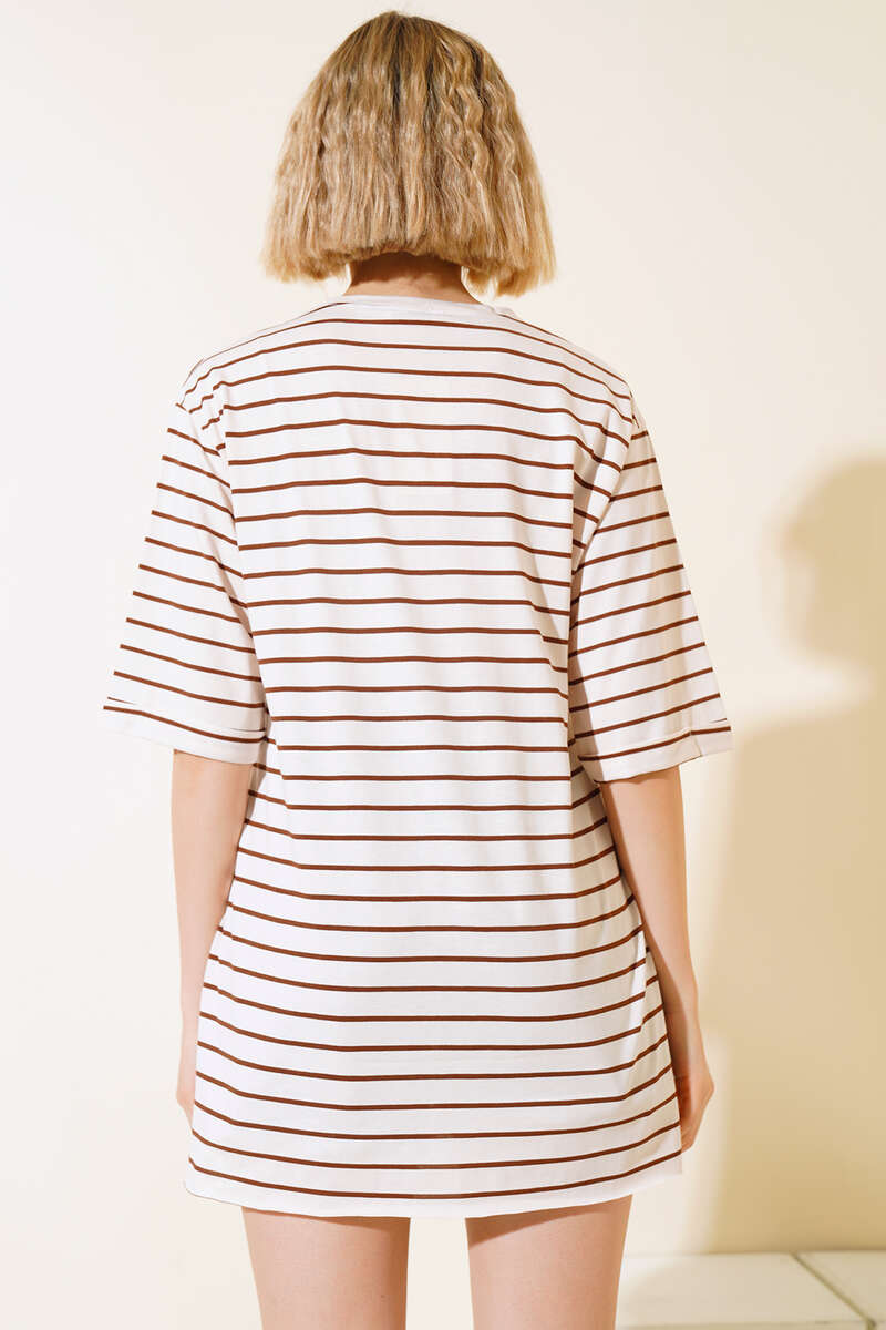 Çizgili Kısa Kol T-shirt Kahve