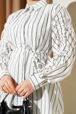 Gizli Düğmeli Bel Kuşaklı Gömlek Beyaz