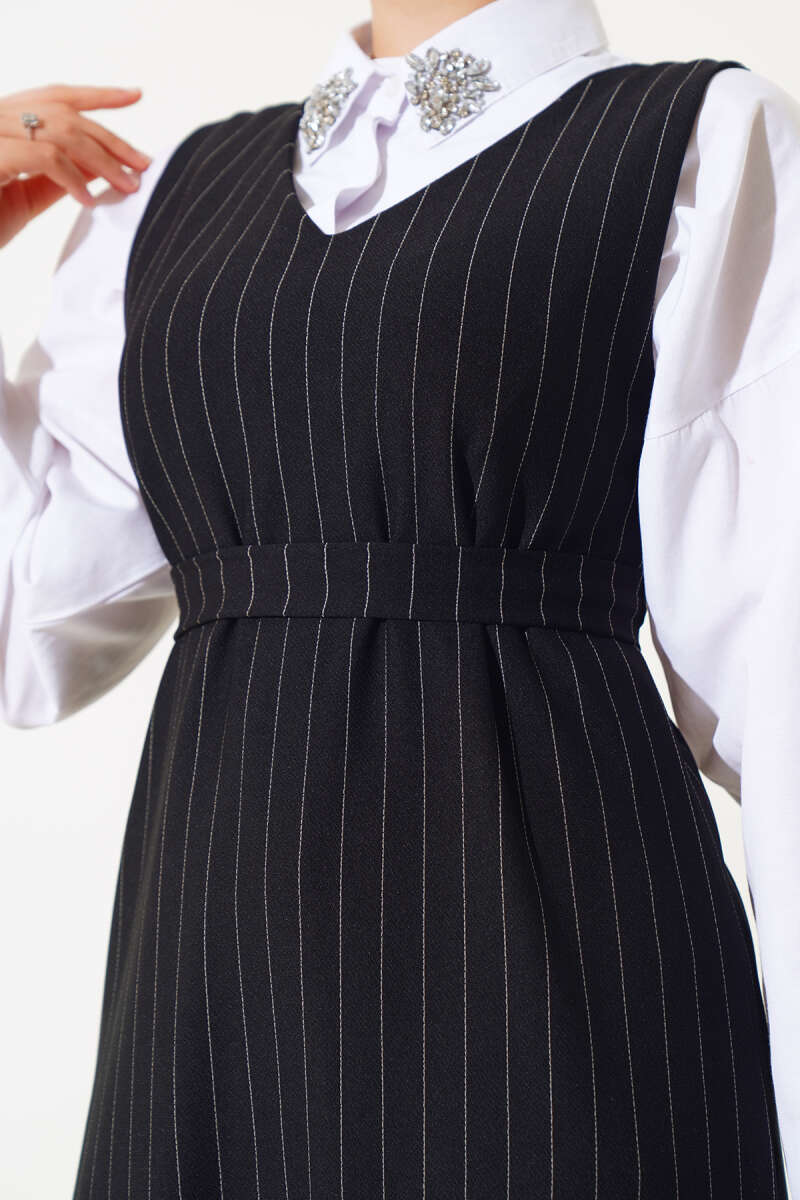 Önü Düğmeli Ekose Desen Elbise Siyah