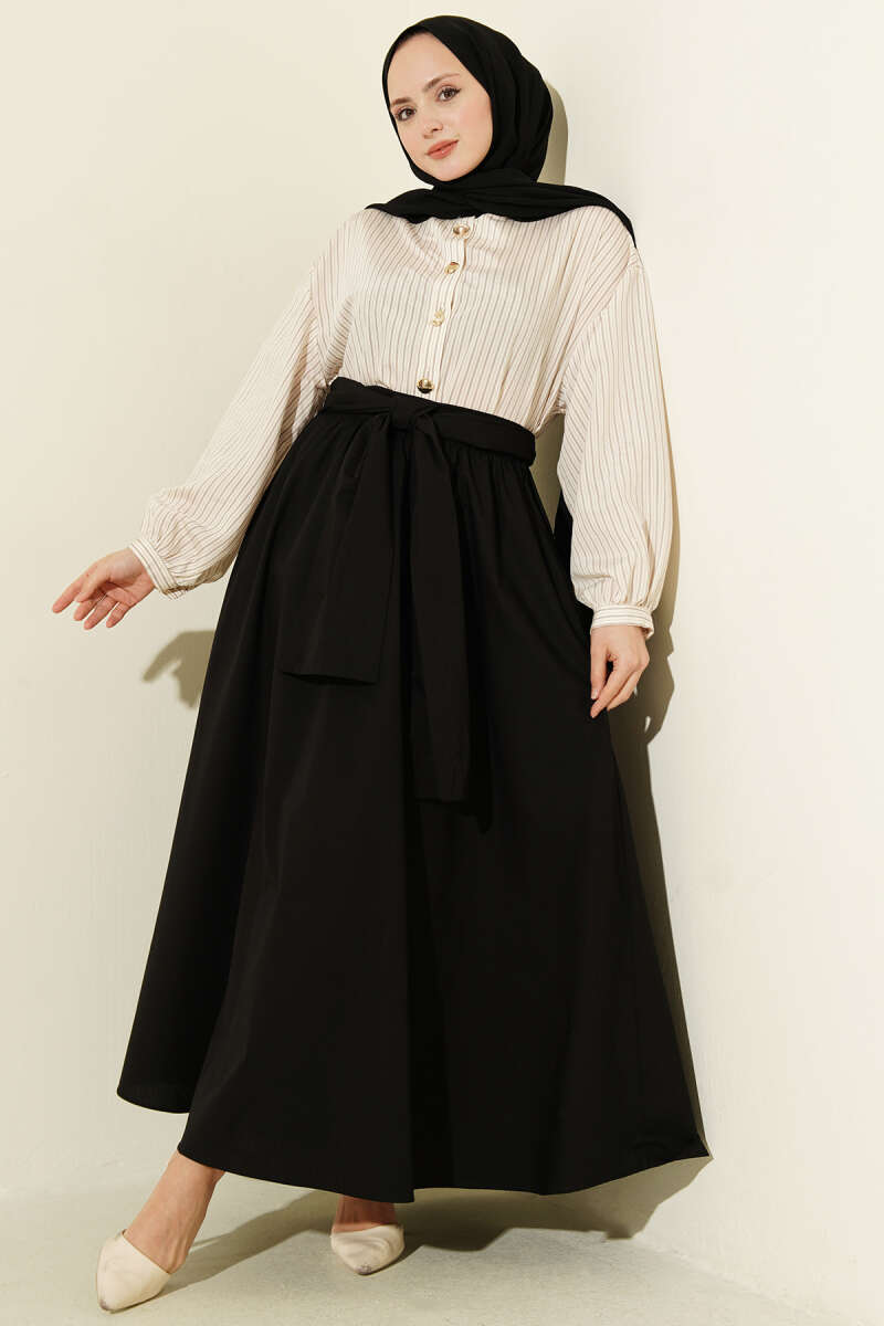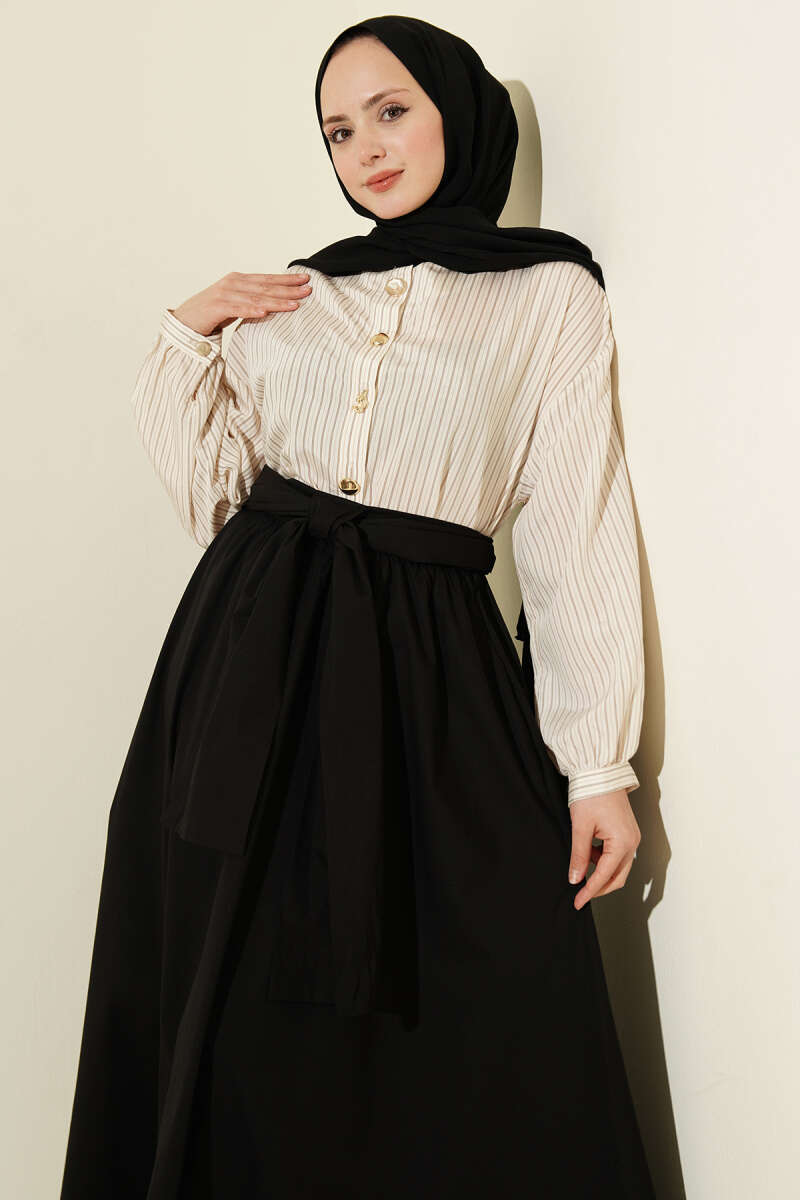 Gömlek Yaka İp Bağcıklı Etekli İkili Takım Kahve