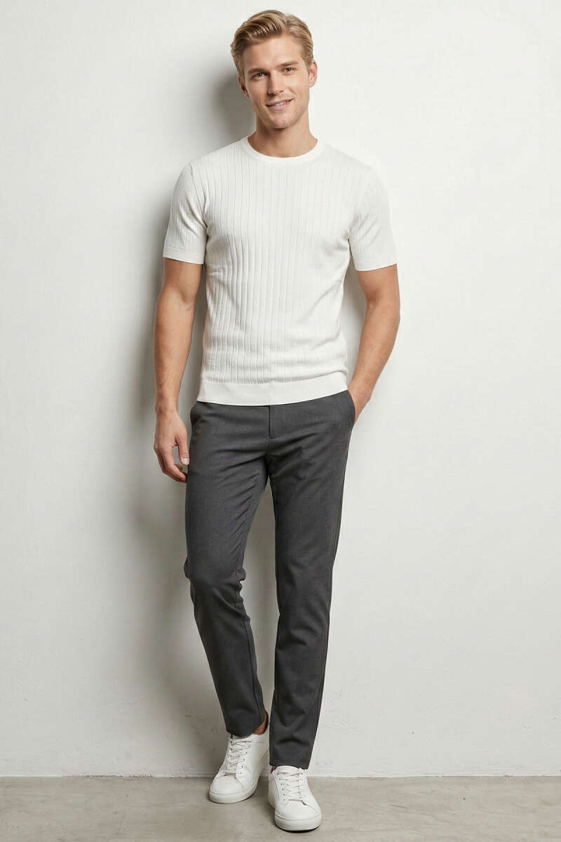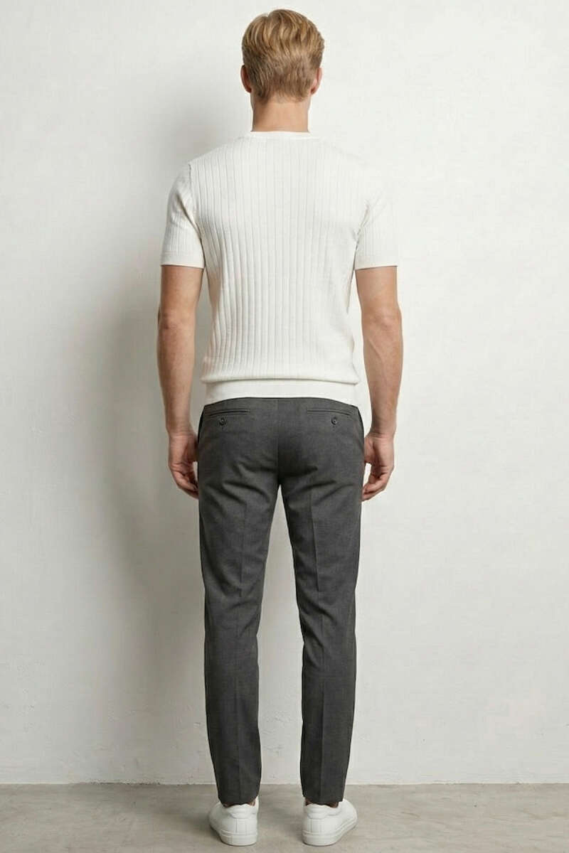 Slim Fit Yaka Düğmeli Erkek T-shirt Füme