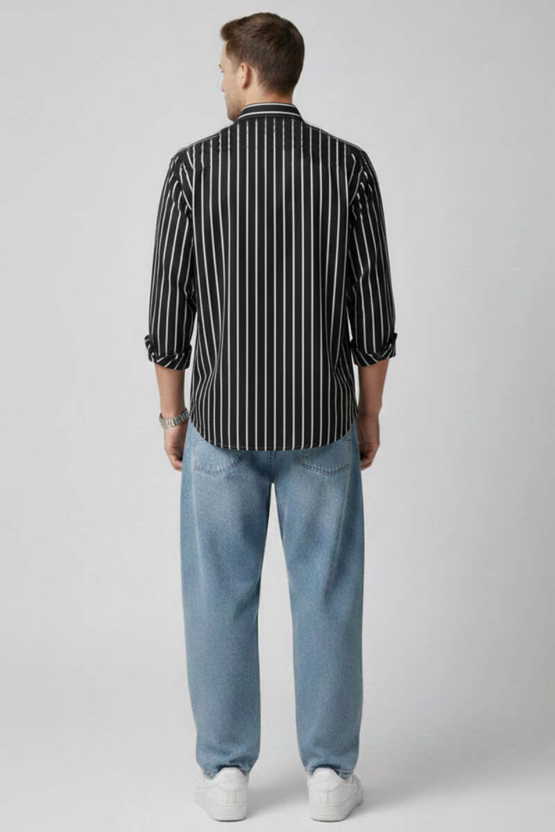 Bilek Manşetli Tensel Erkek Gömlek Siyah