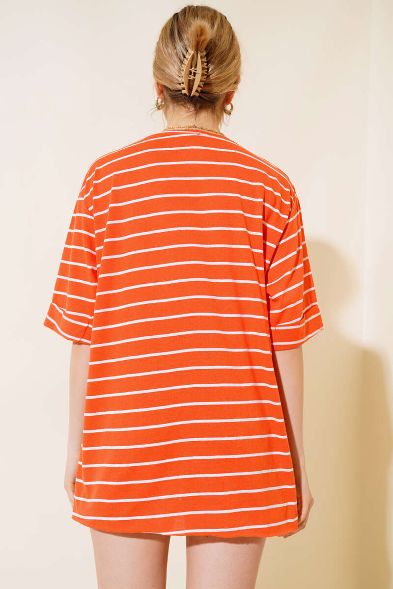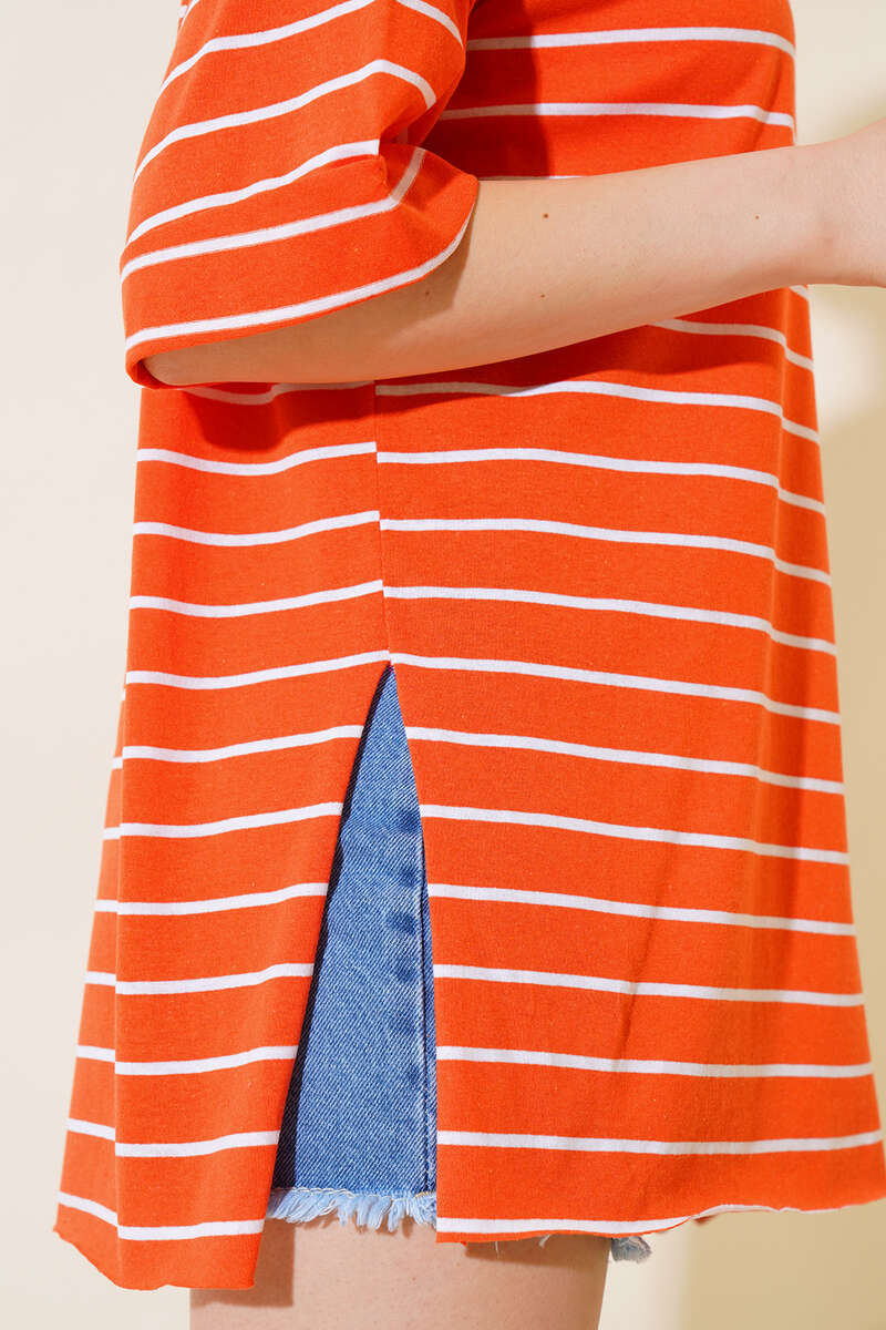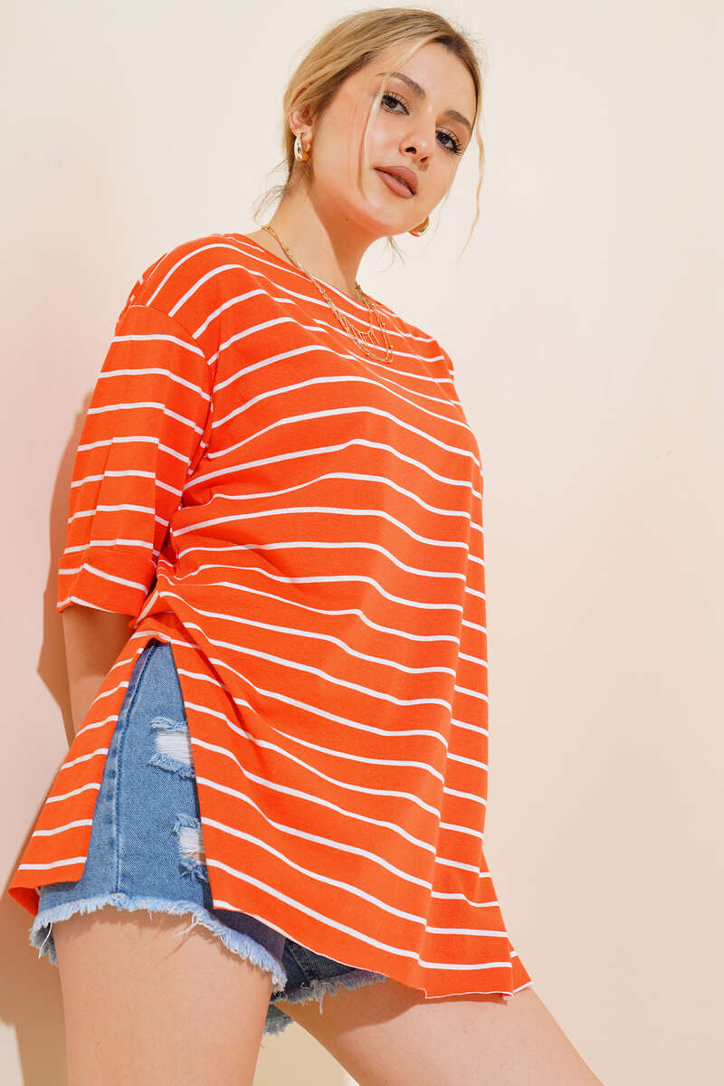 Bu yaz tarzıyla fark yaratan tshirtümüz çizgili desenleriyle dikkat çekmektedir. Oval yaka olan tshirt modelimizin yanları yırtmaçlıdır. Renk seçenekleri mevcuttur.