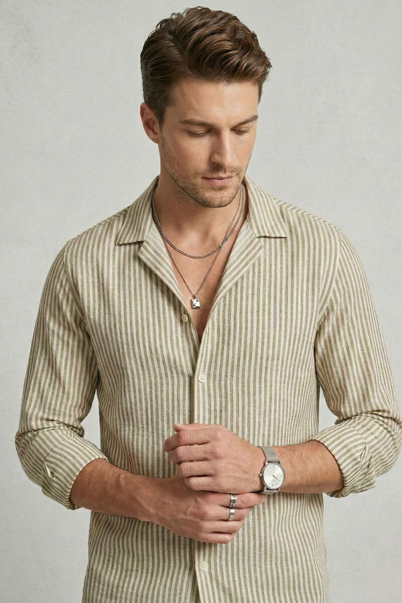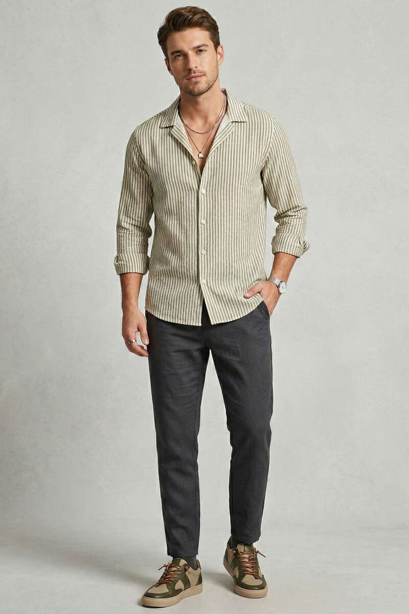Çizgili Oversize Erkek Gömlek Taş