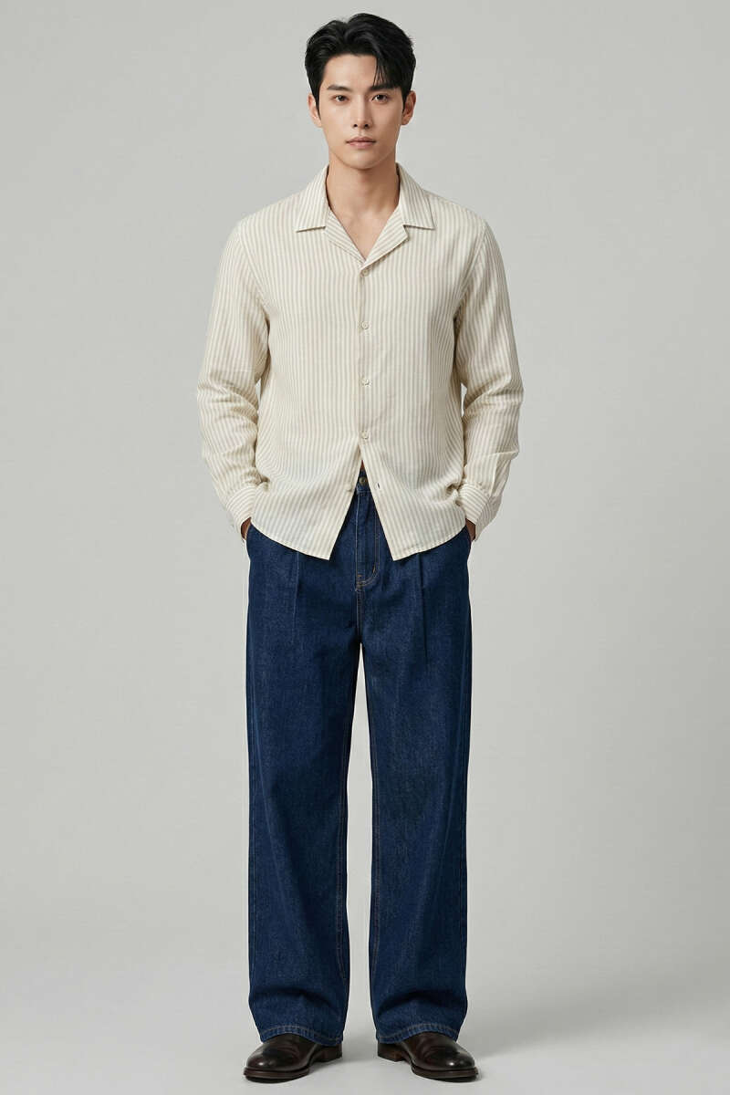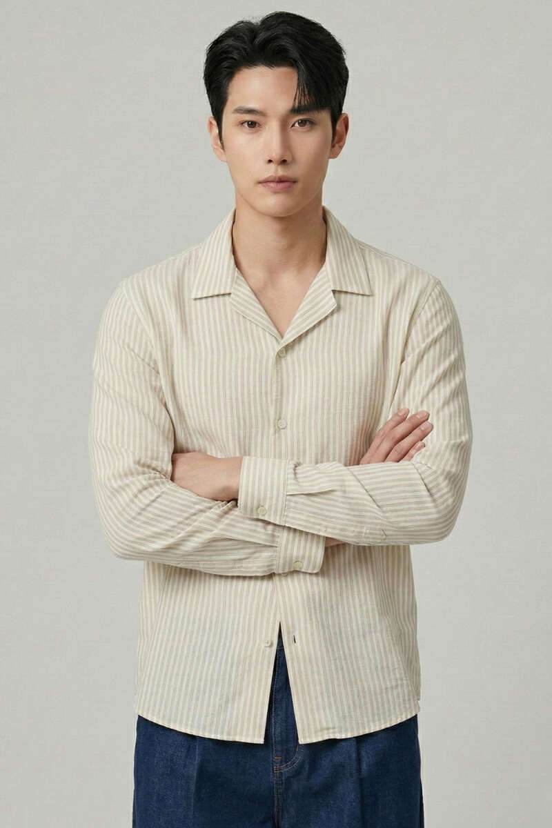 Bilek Manşetli Çizgili Erkek Gömlek Siyah