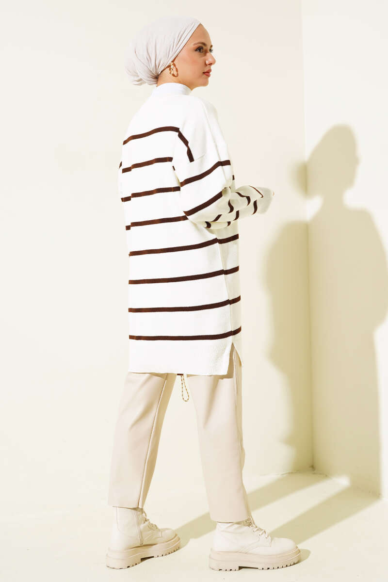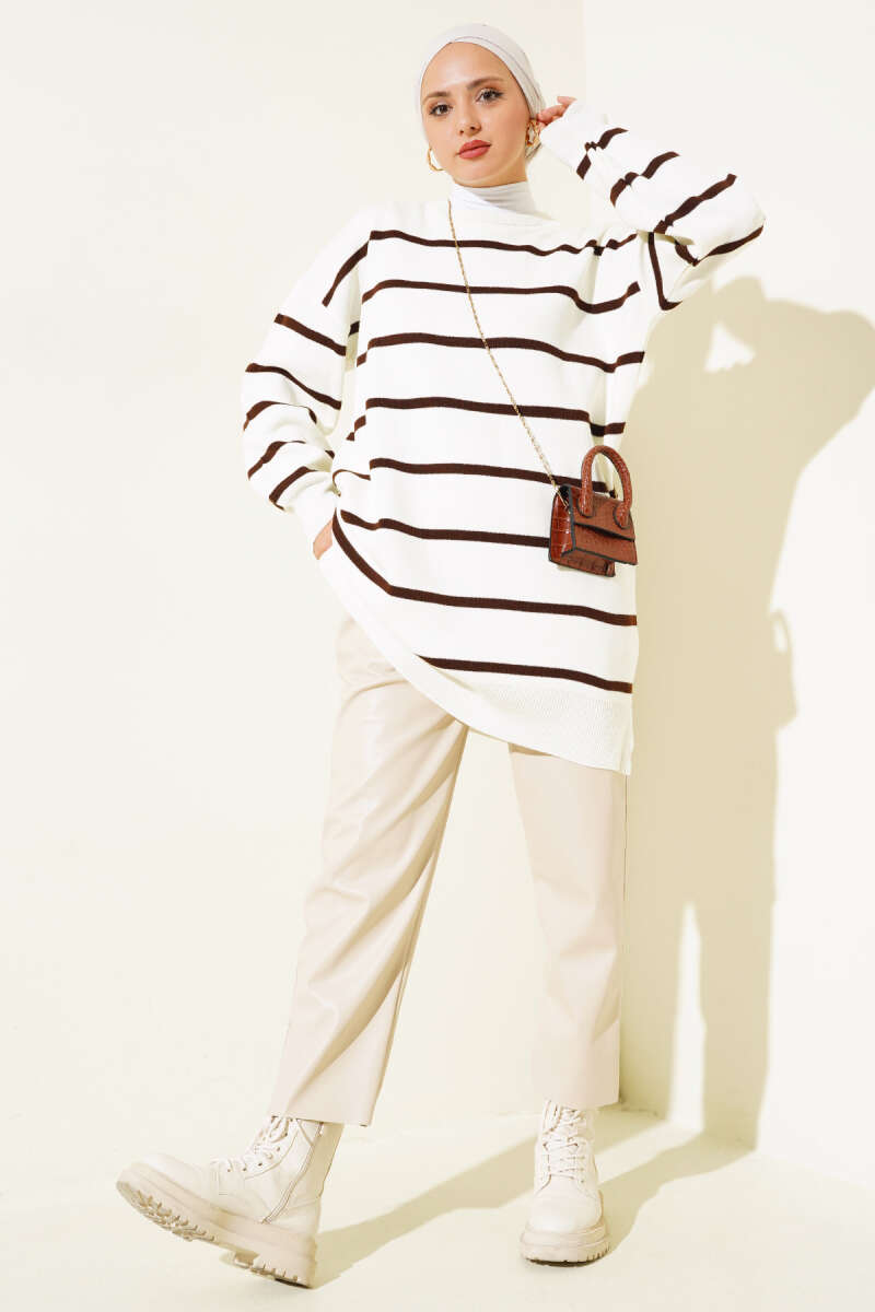 Düşük Omuz Salaş Triko Tunik Kahve