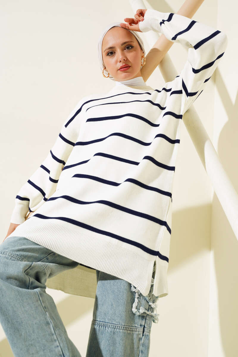 Yanı Yırtmaçlı Oversize Triko Tunik Taş