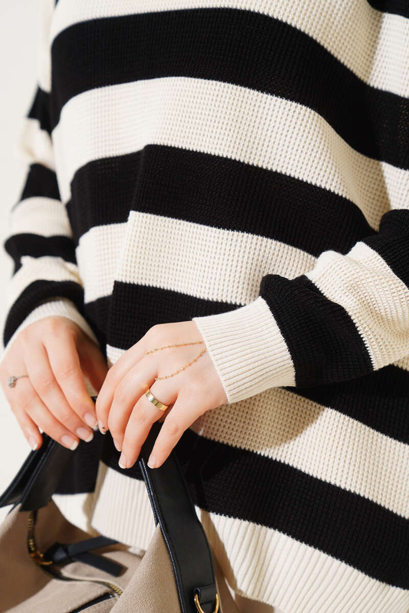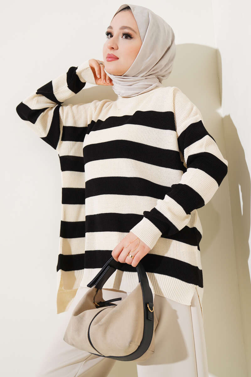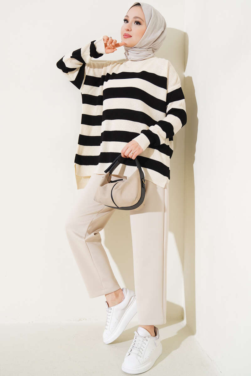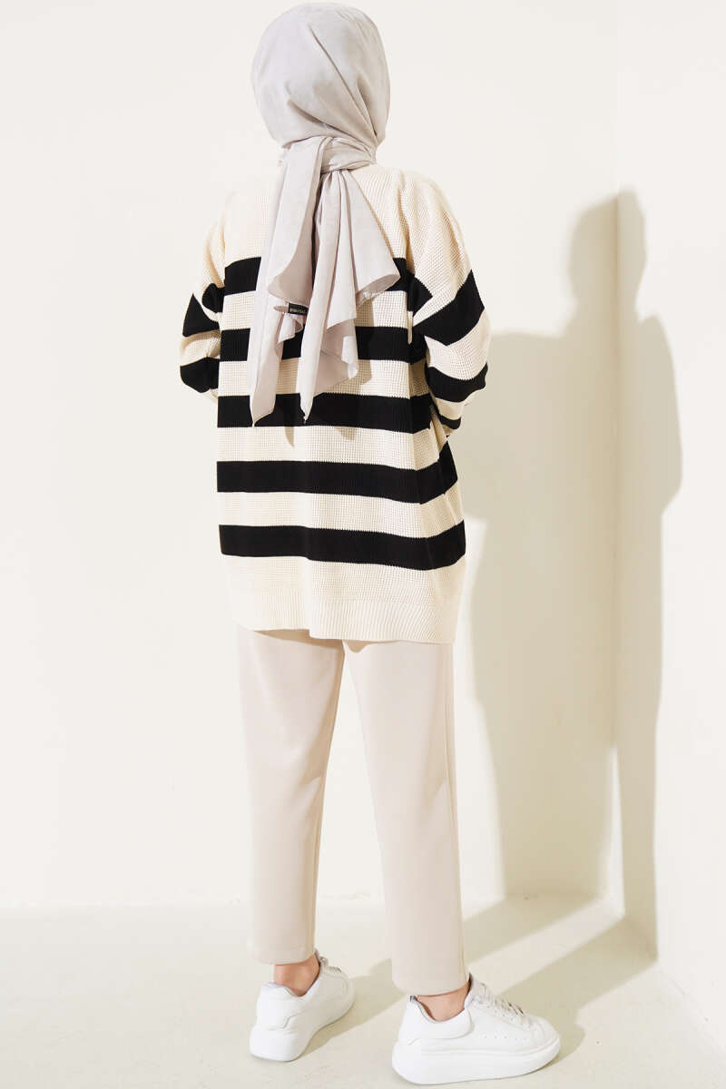 Gömlek Yaka Çizgili Triko Tunik Bej