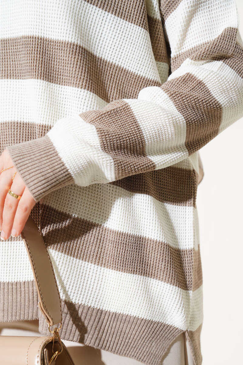 Gömlek Yaka Çizgili Triko Tunik Vizon