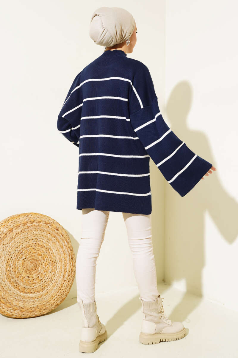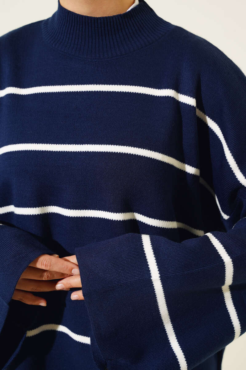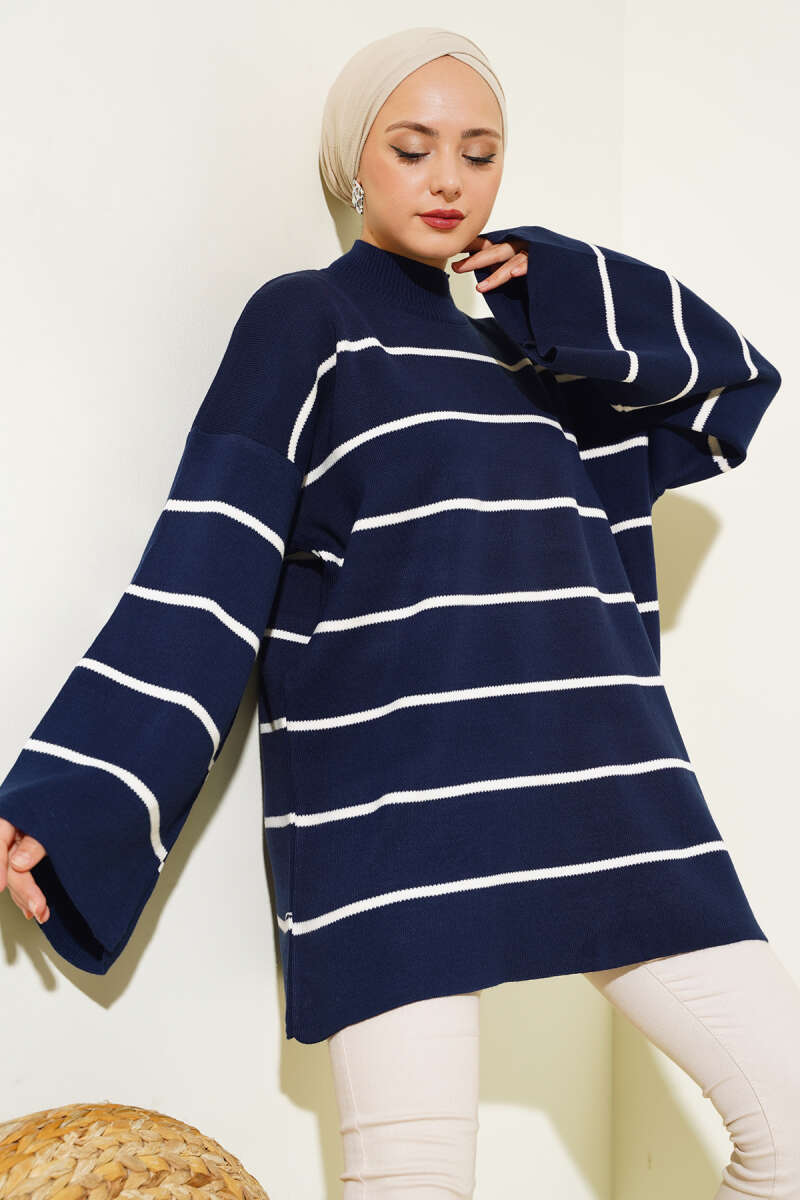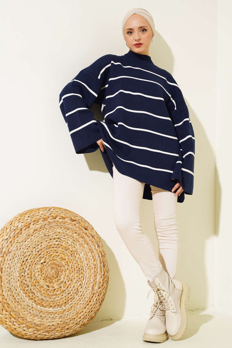 Yatay Çizgi Detaylı Triko Tunik Siyah