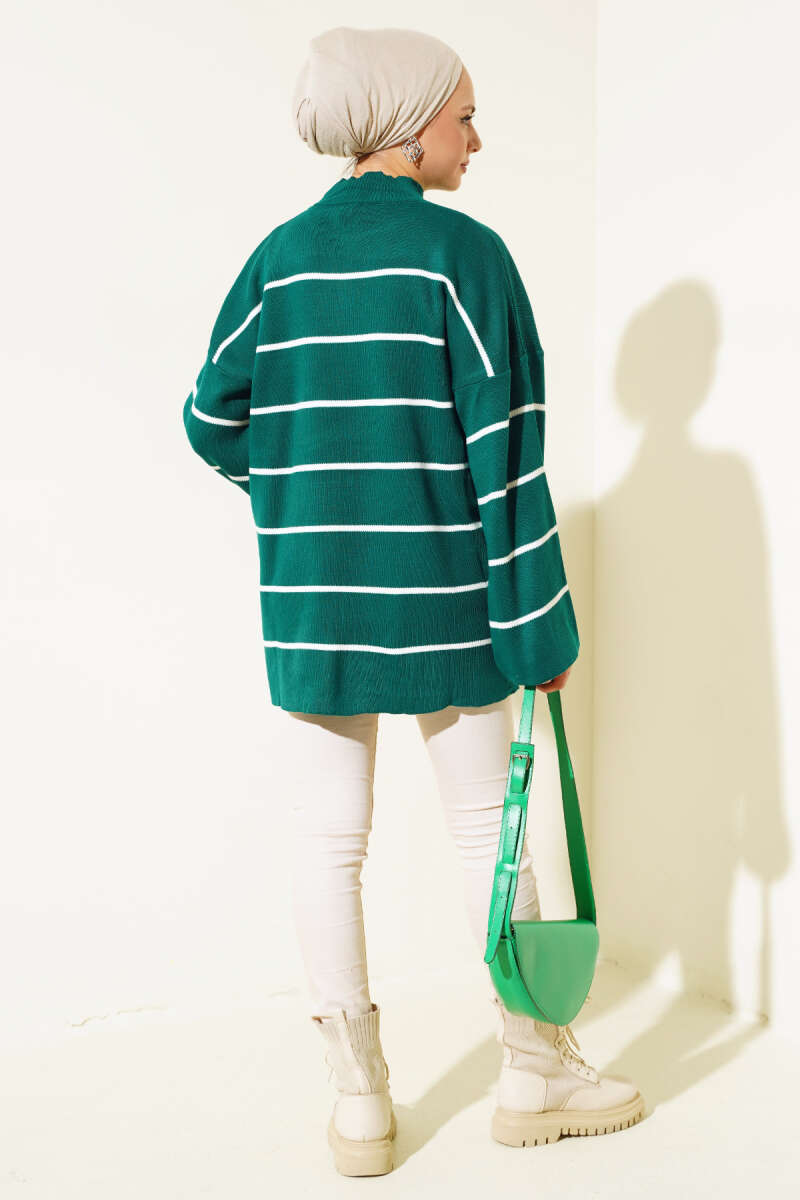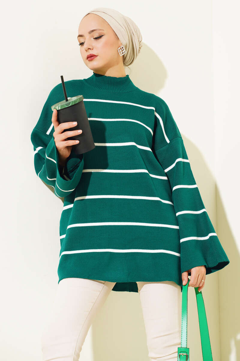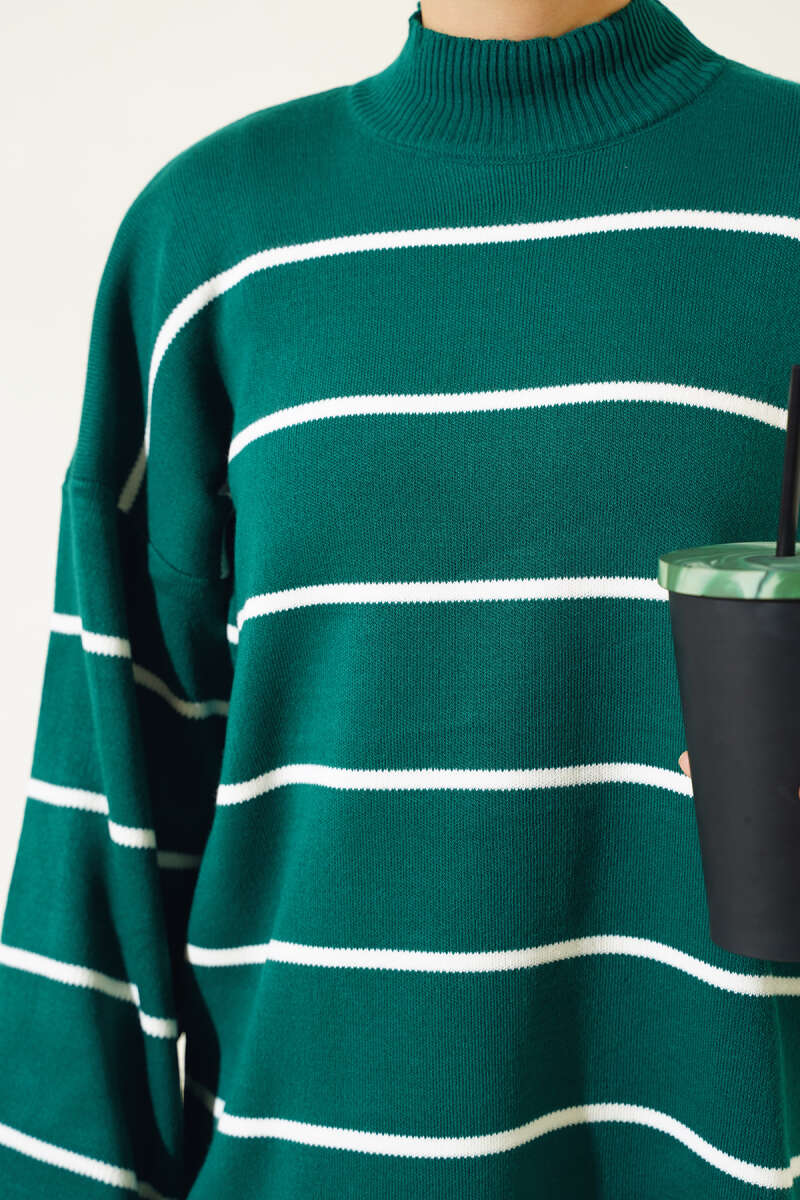 Çizgili Salaş Dik Yaka Triko Tunik Nefti