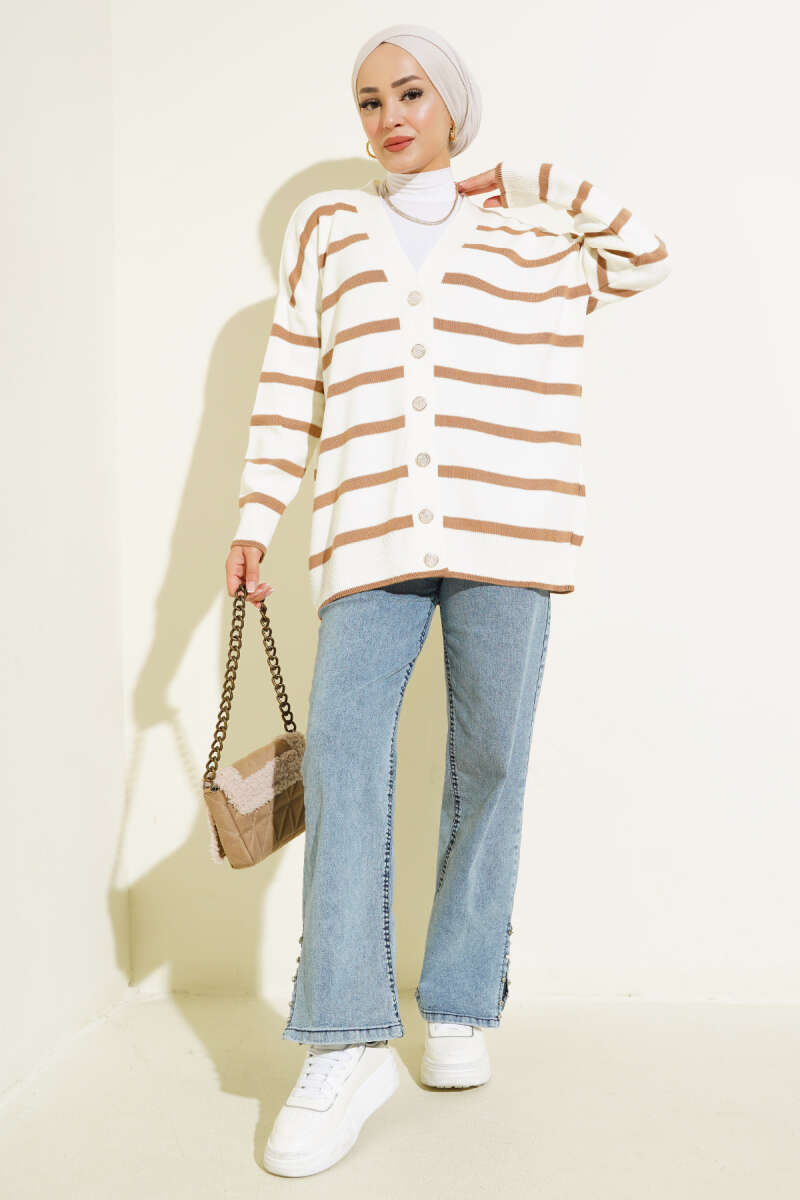 Pirinç Örgü Basic Triko Hırka Nar Çiçeği