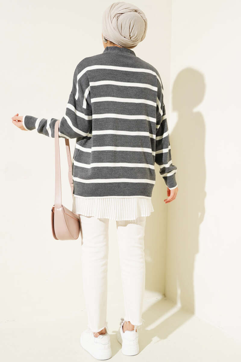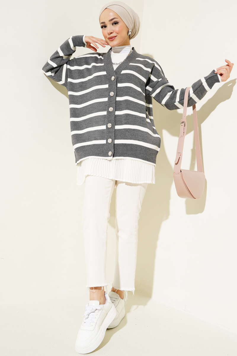 Çizgili Salaş Hırka Füme