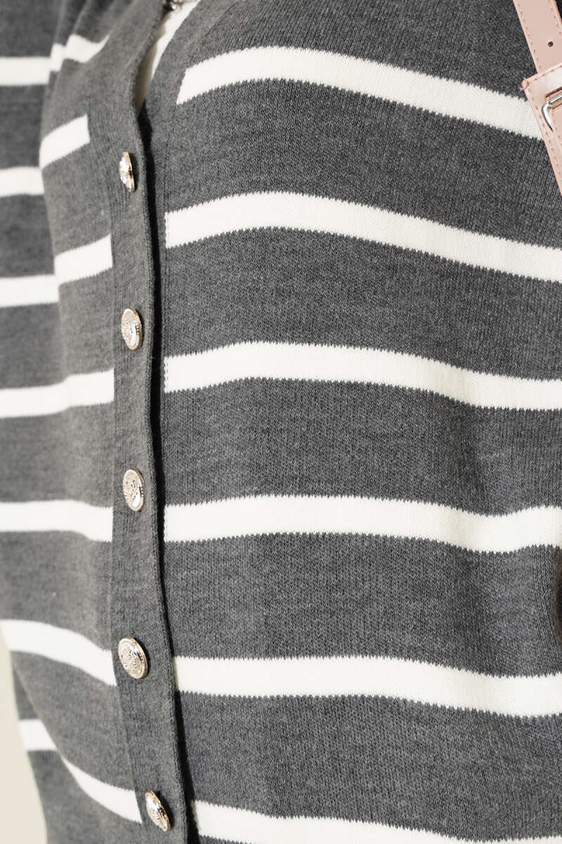 Zikzak Desenli Gold Düğmeli Triko Hırka Gri
