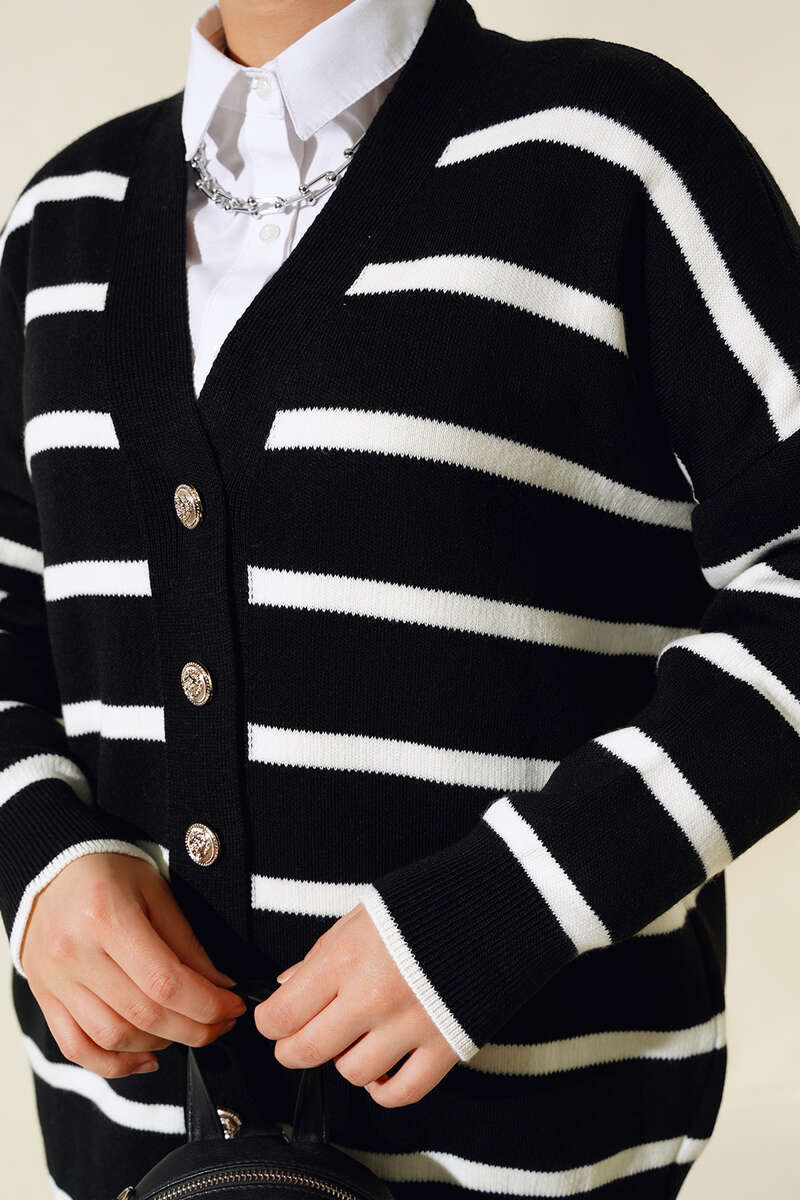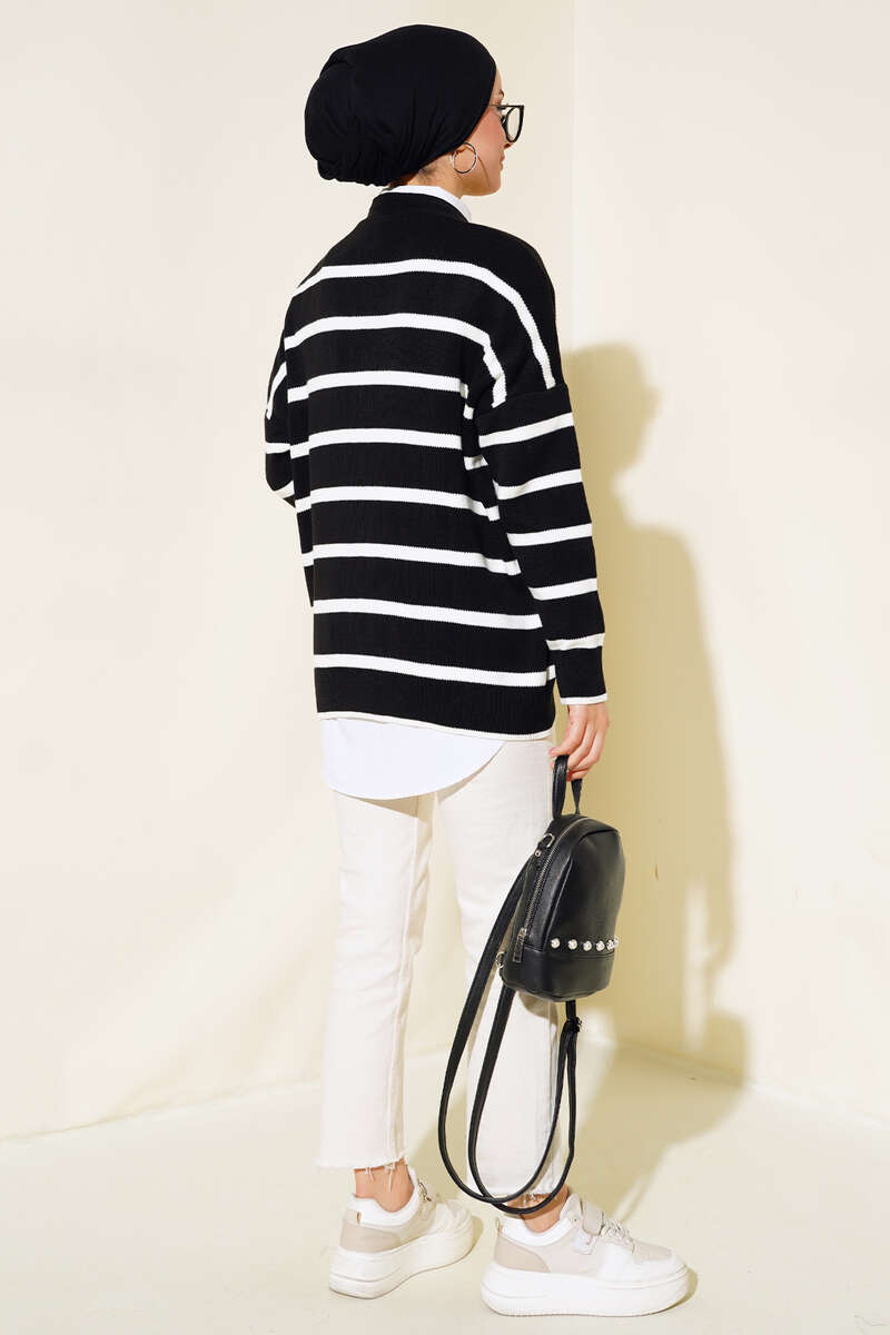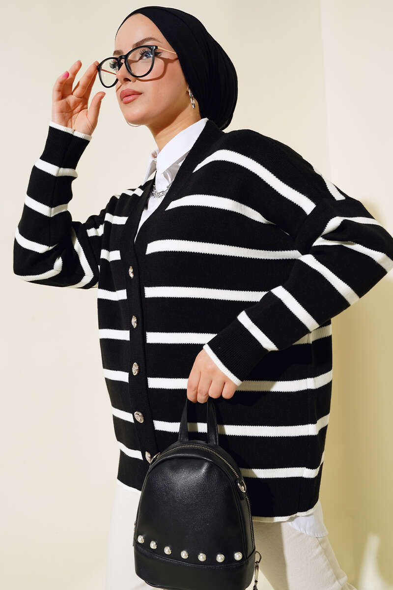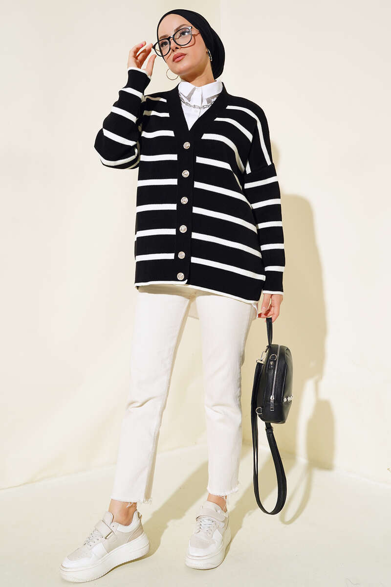 Sezonun sportif hırka modeli sizlerle beraber. Hırkamız Yatay çizgileriyle hareketlilik kazanmıştır. Salaş modeldir. Önü düğmelidir. Şık ve sportif hırka modelimiz kombinlerinize çok yakışacak.