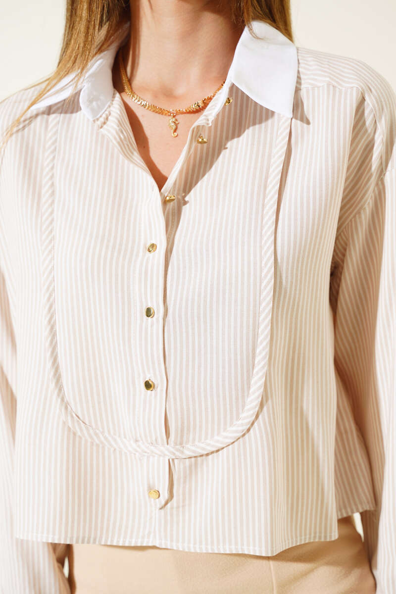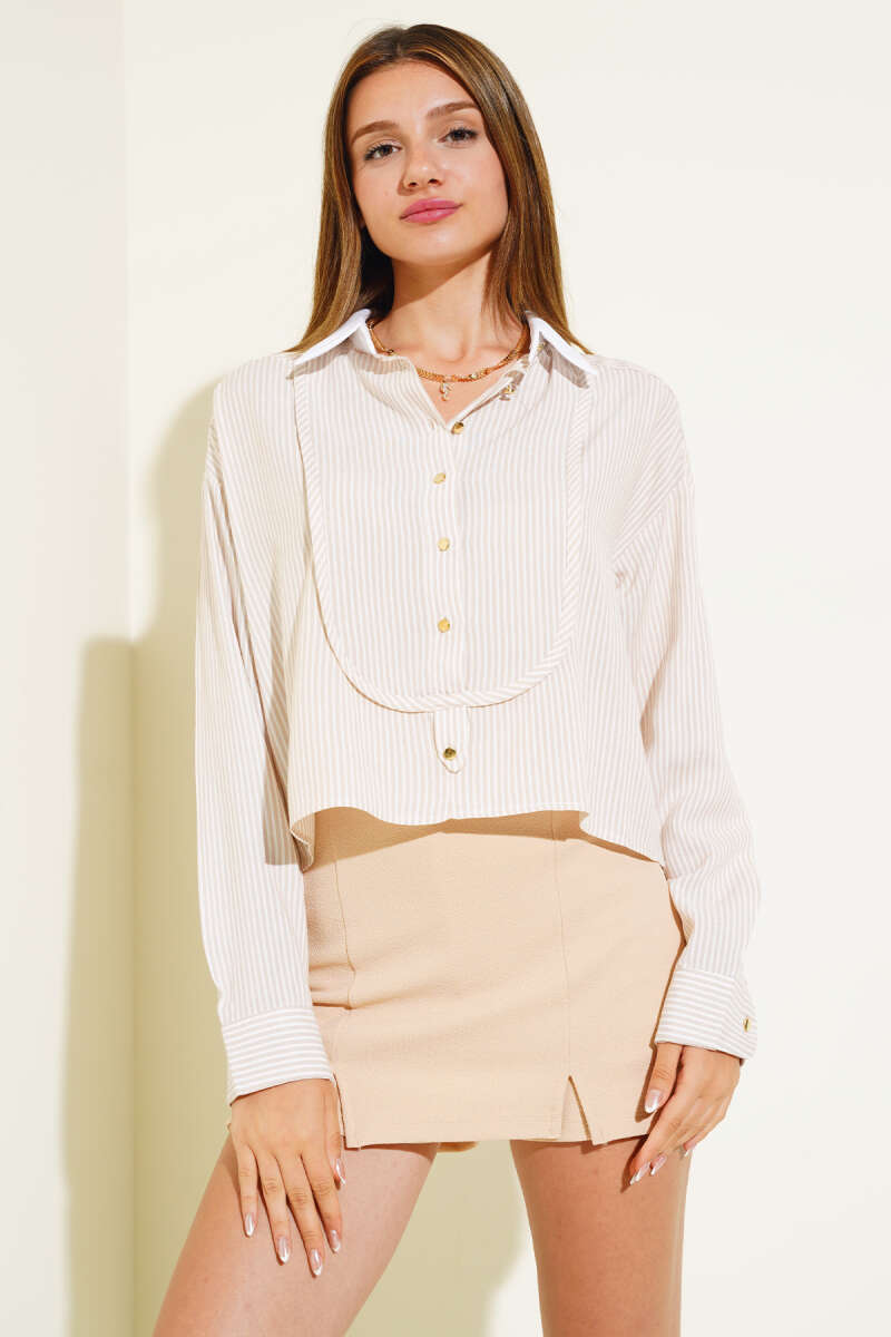 Önü Bağlama Detaylı Modal Gömlek Bej