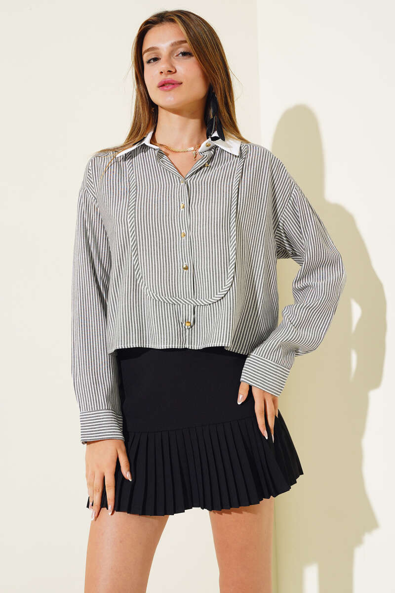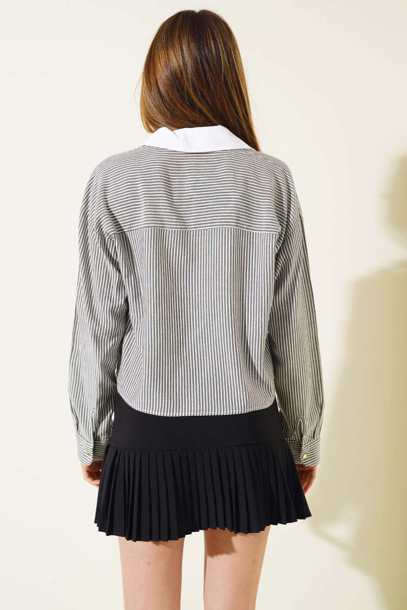 Çizgili Salaş Kısa Gömlek Siyah