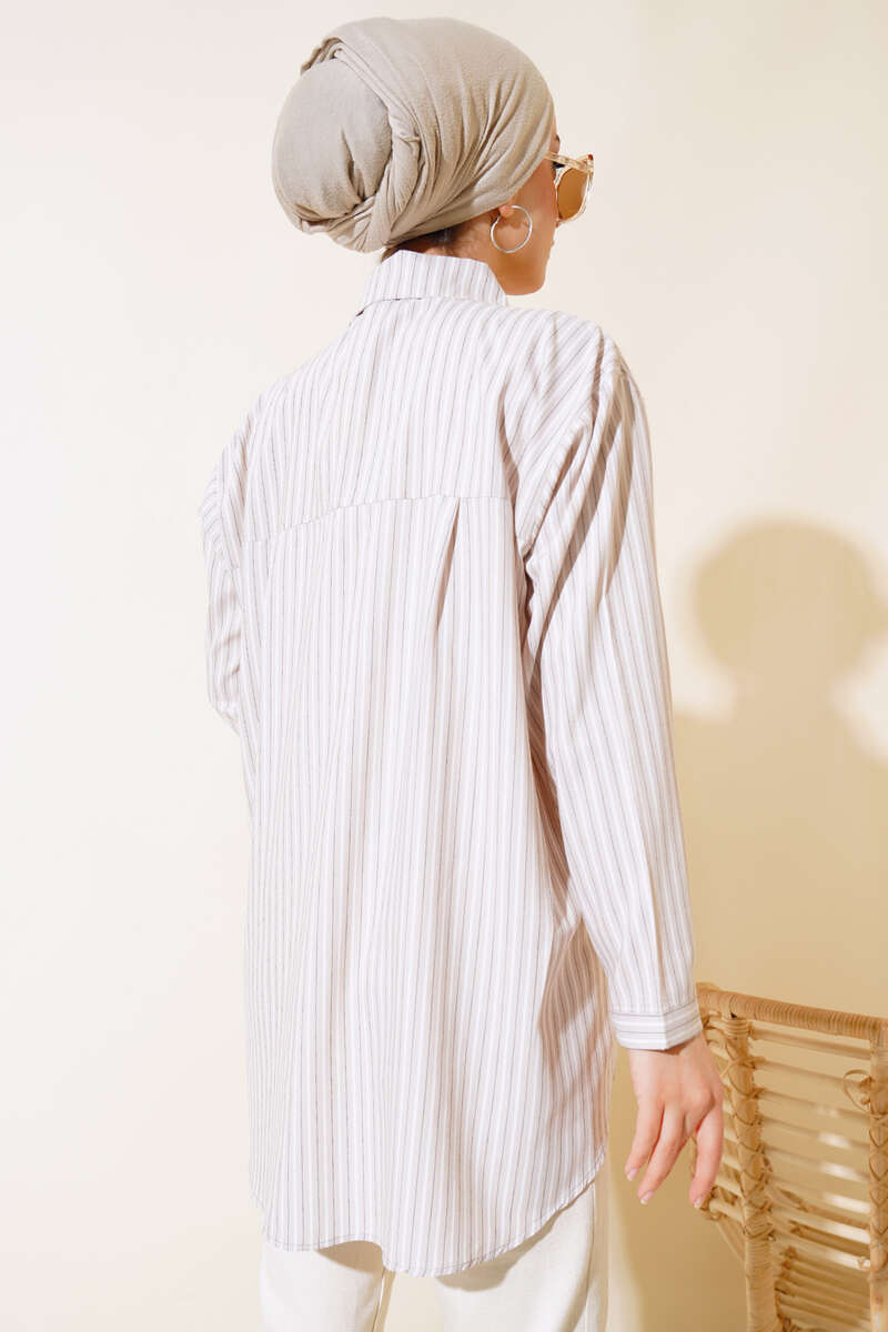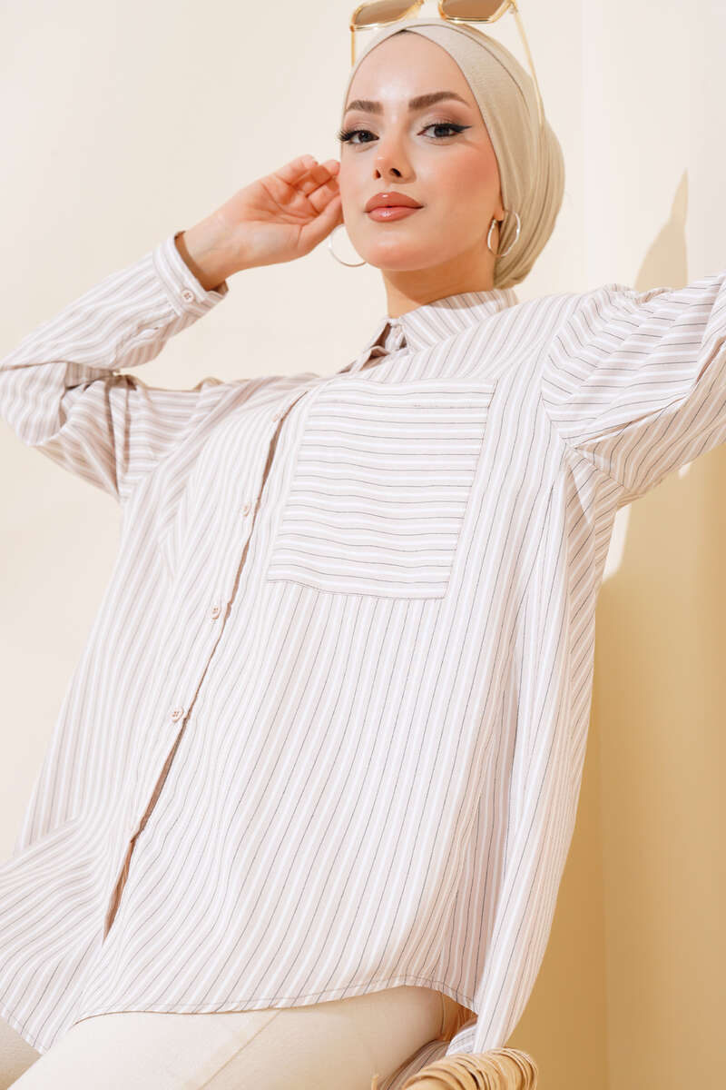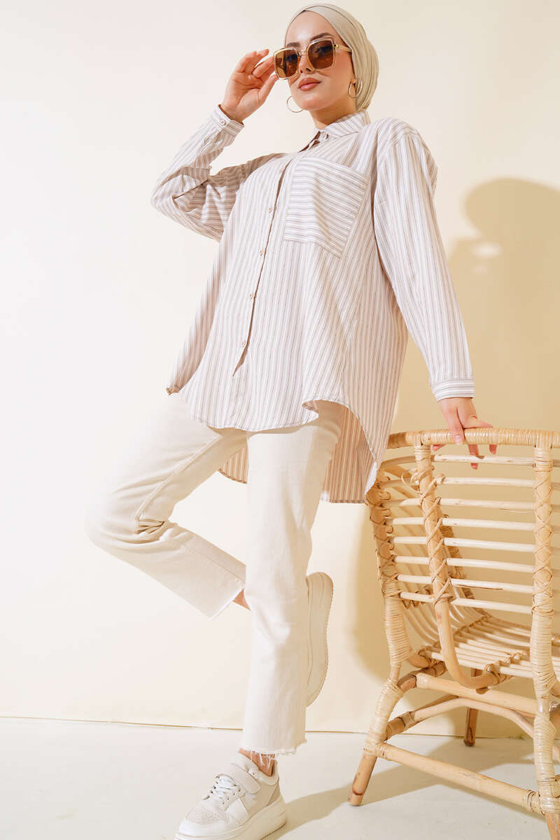 Yeni sezon gömleğimizi çok beğeneceksiniz. Çizgili model gömleğimizin önü kısa arkası uzundur. Tek cepli modeldir. Gömleğimizin arkası pileli modeldir. Önü boydan düğmelidir.