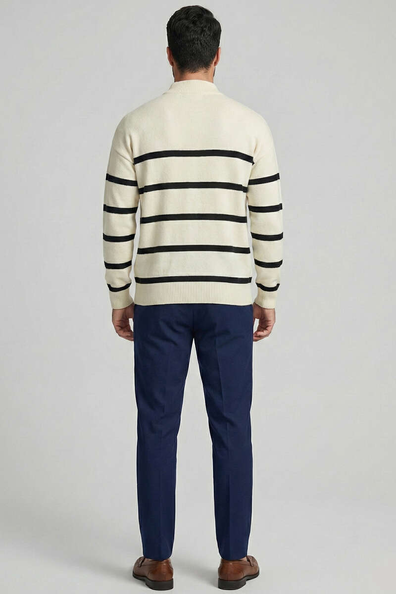 Çizgi Desen Örgü Triko Erkek Kazak Siyah