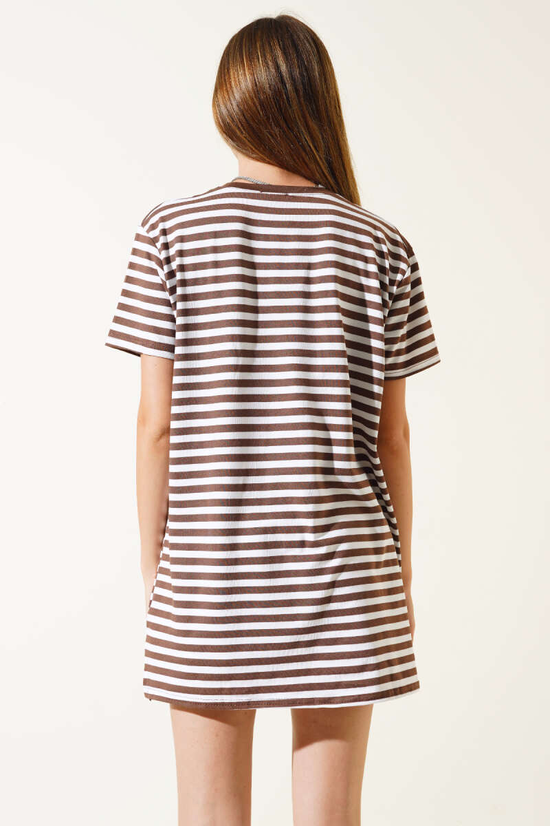 Balıkçı Yaka Fitilli Salaş Triko Tunik Kahve