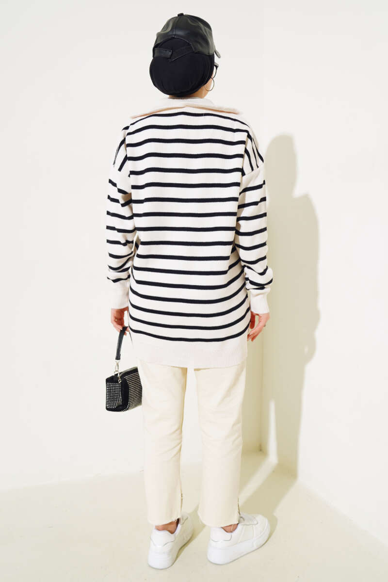 Gömlek Yaka Fularlı Triko Tunik Taş