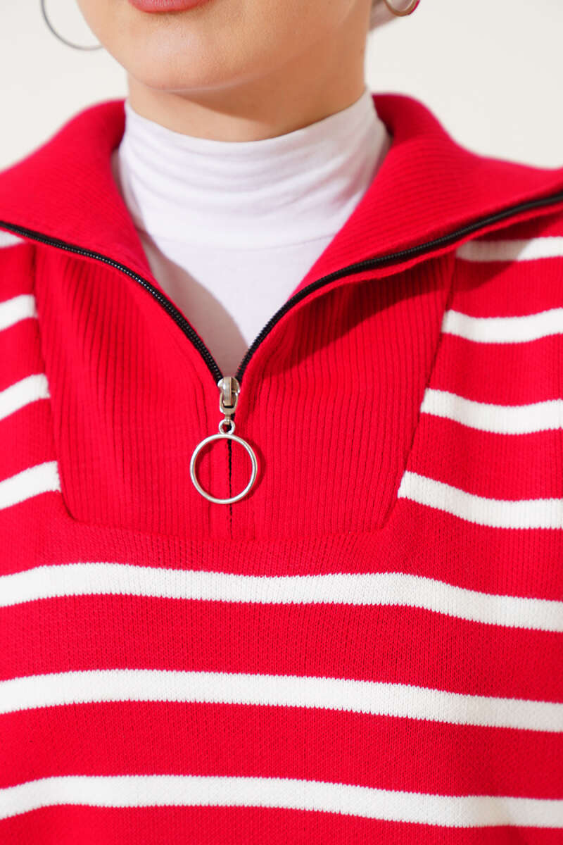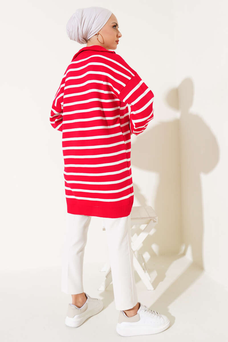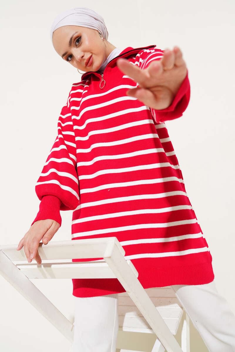 Kol Düğme Detaylı Triko Tunik Kırmızı