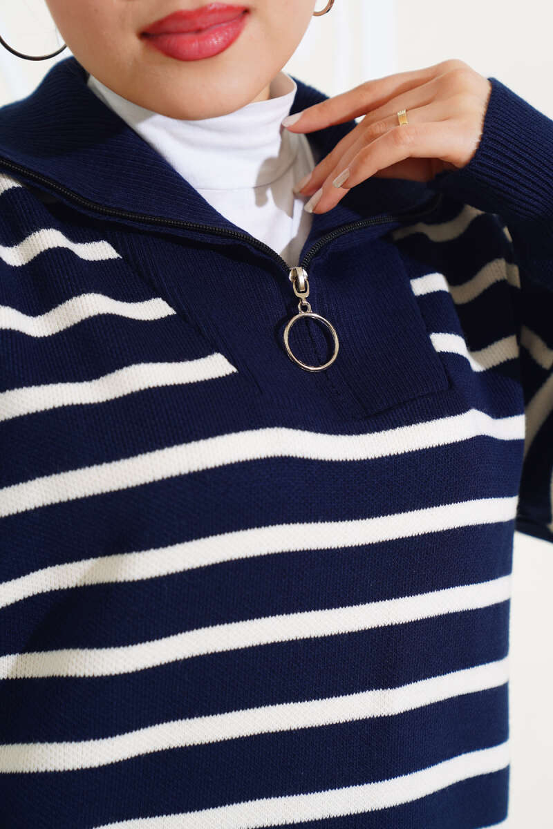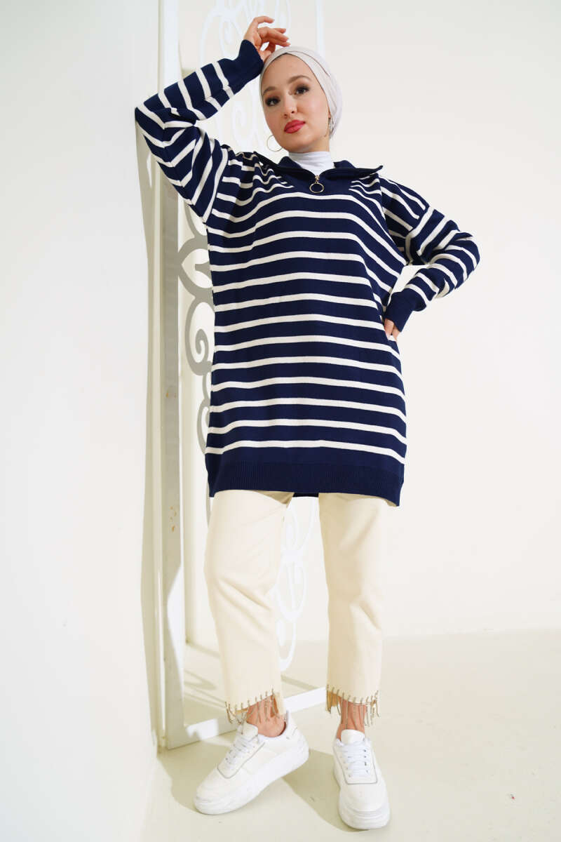 Gömlek Yaka Fularlı Triko Tunik Lacivert